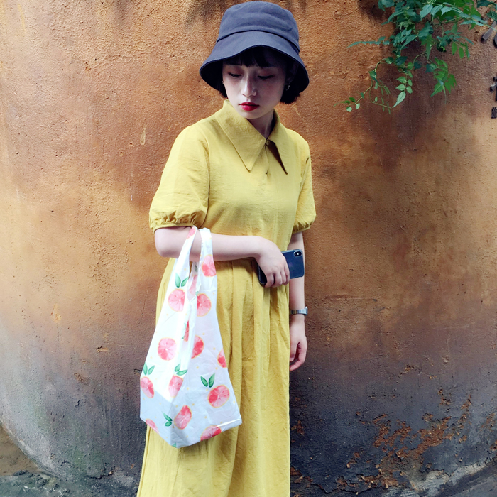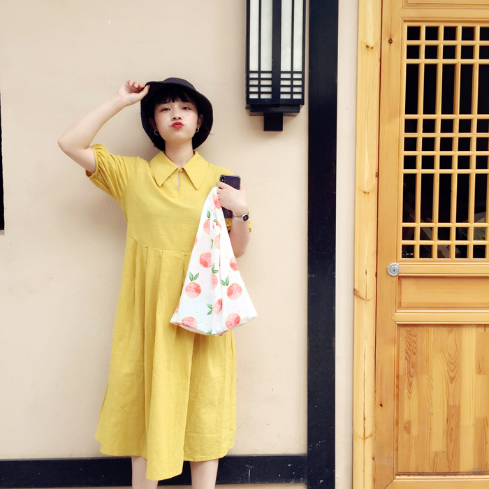 韓國chic文藝小清新帆布單肩包女包簡約百搭少女手提包購物袋布包1入