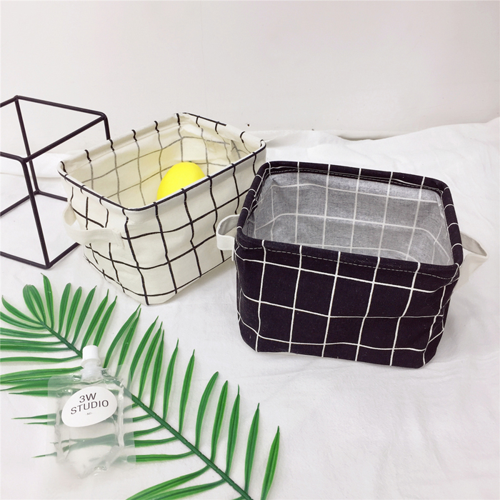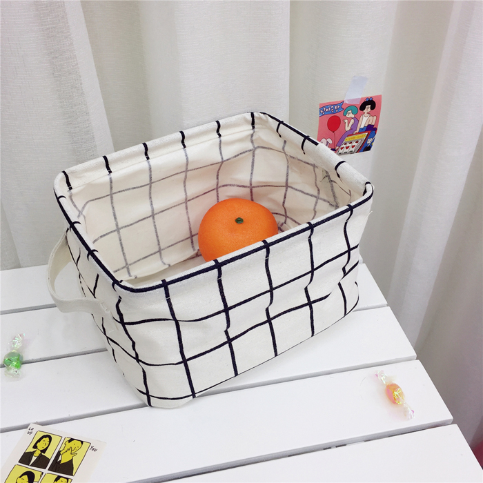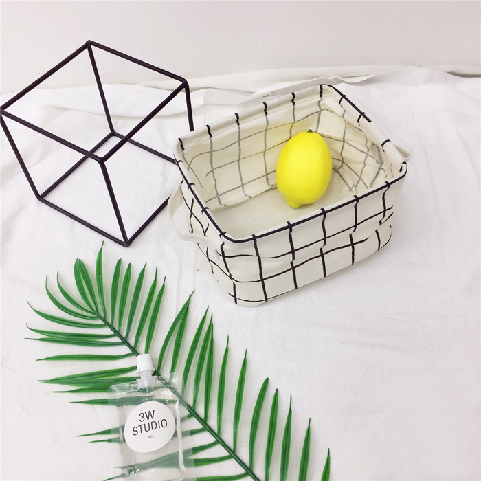 韓國chic風少女心簡約格子收納籃桌面方形化妝品雜物收納筐化妝包1入