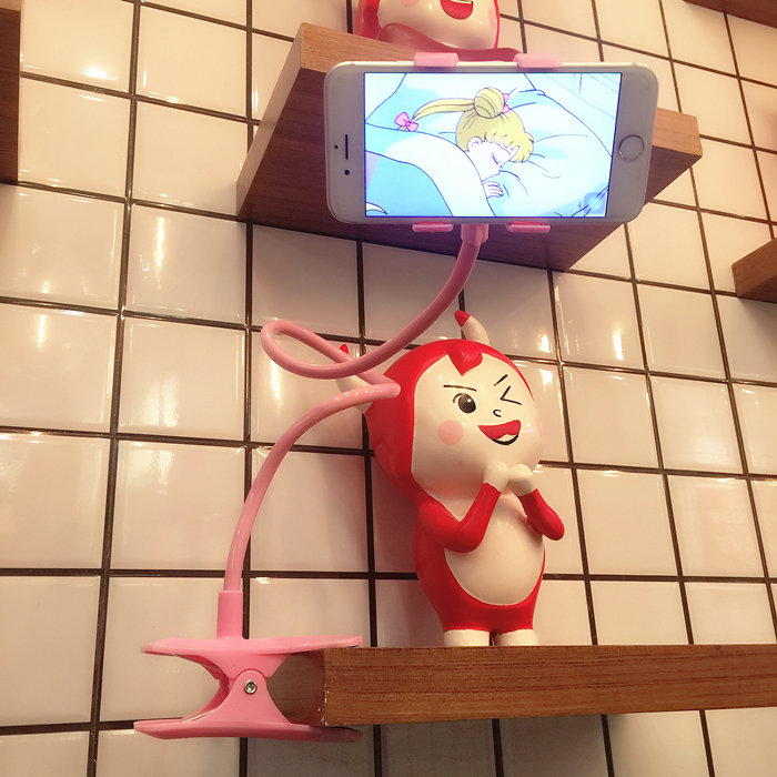 手機夾張開11cm左右(普通手機都可以用噢) 可以放在床頭、桌邊使用,不用的時候也可以收起來哦,很方便 輕微劃痕和掉漆難免會存在,不屬于質量問題哦,能接受才拍 收到的形狀是卷起來的,造型,形狀隨自己DIY的哈