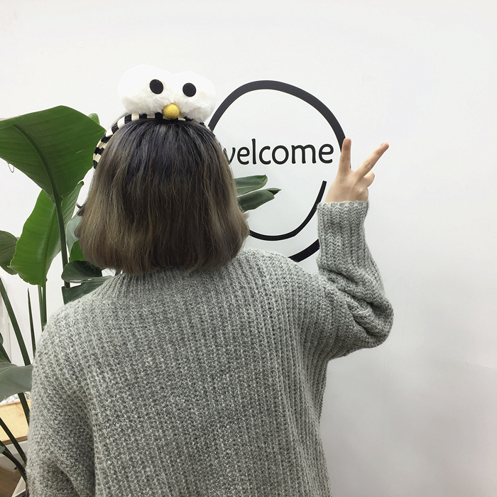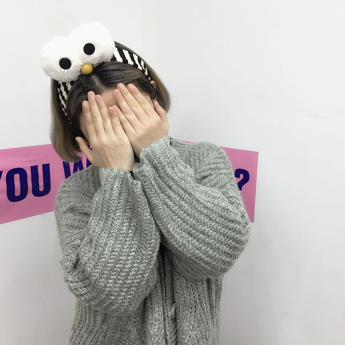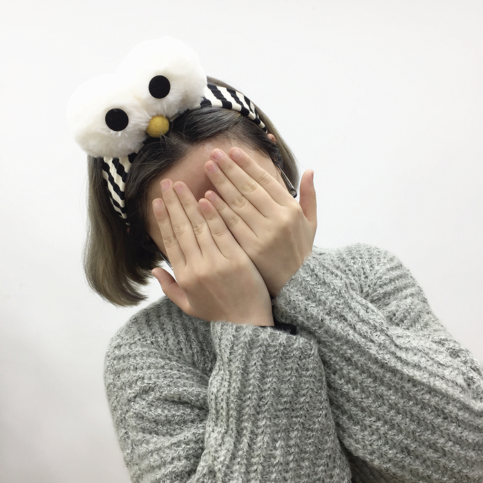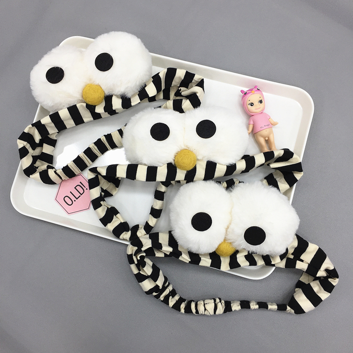 韓國原宿卡通搞怪芝麻街大眼睛條紋束發帶女洗臉化妝發帶發箍發飾1入