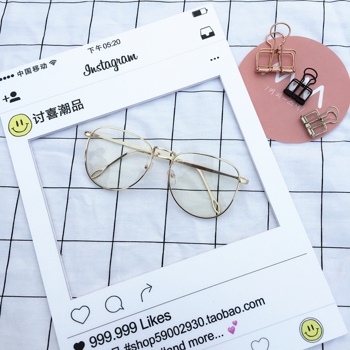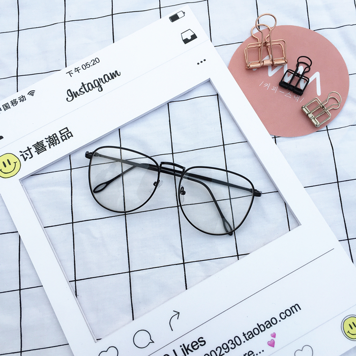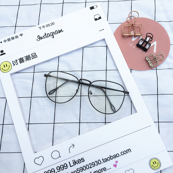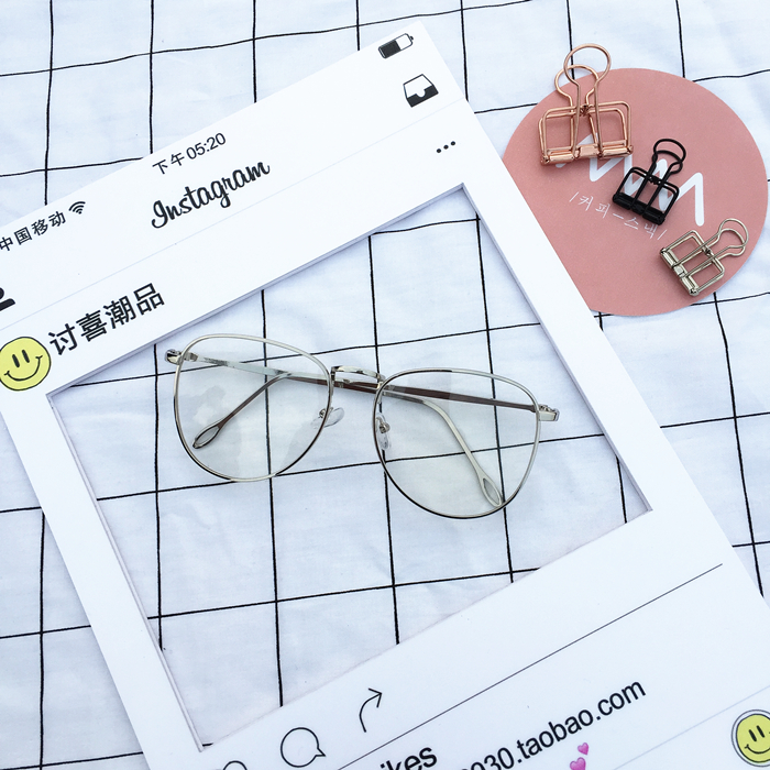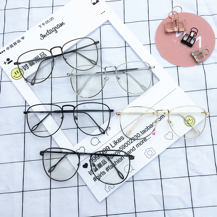 韓國復古文藝百搭潮細框眼鏡費啟鳴同款圓形眼鏡架男女平光眼鏡框1入