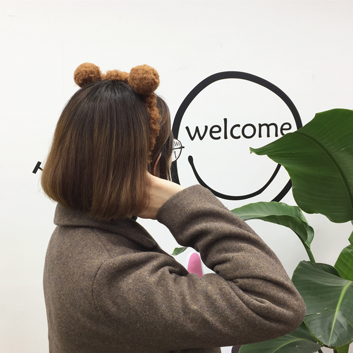 韓國卡通可愛學生毛茸茸小熊耳朵球球發箍軟萌頭箍圣誕風發飾發卡1入