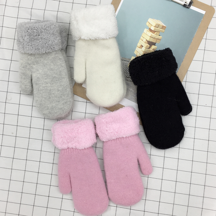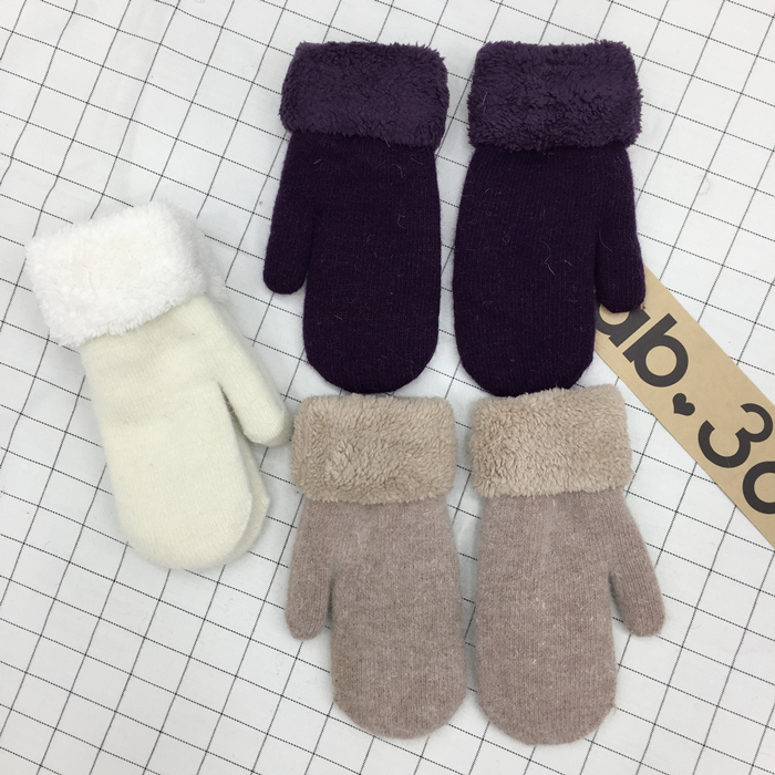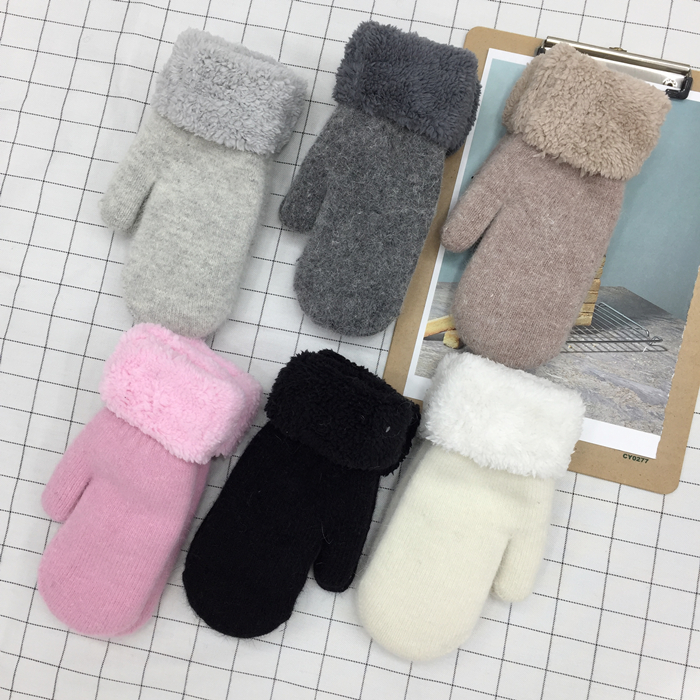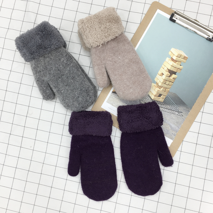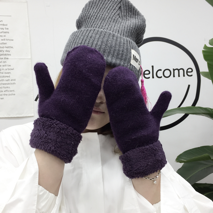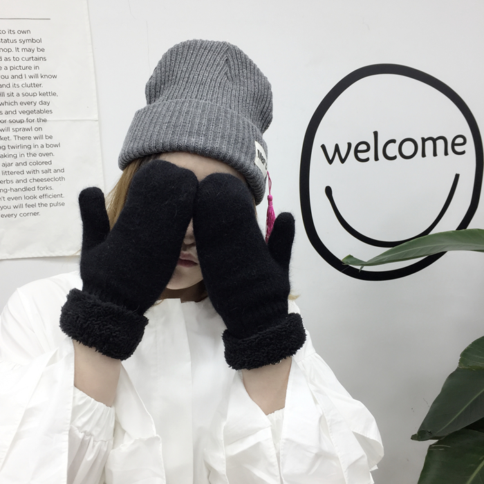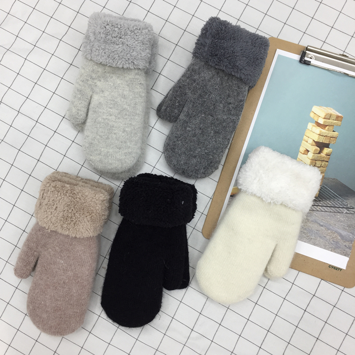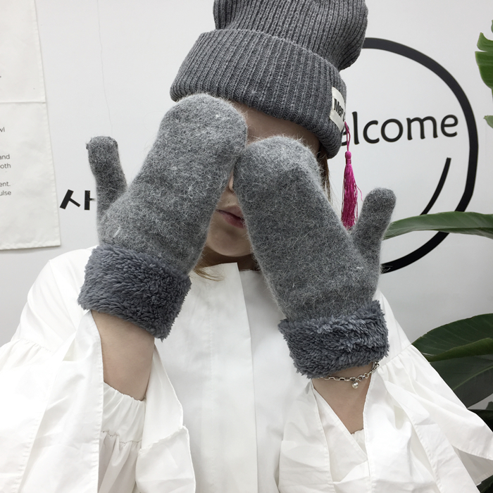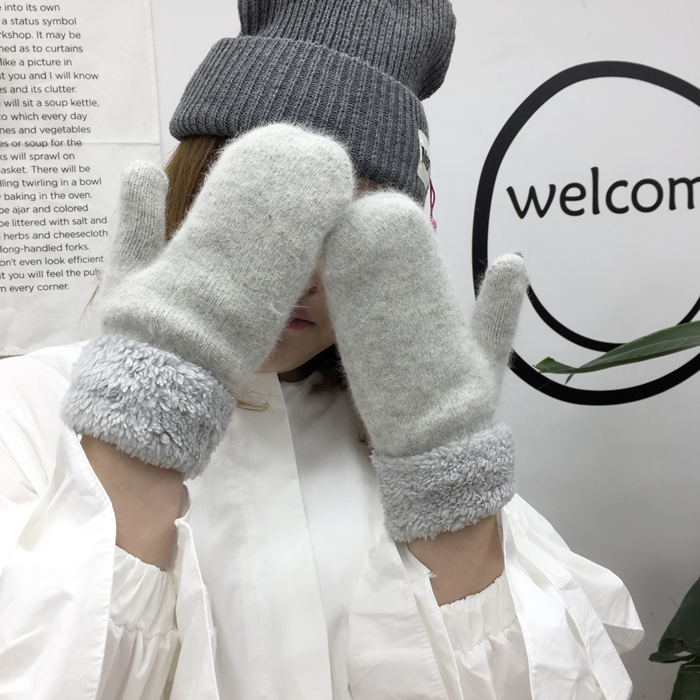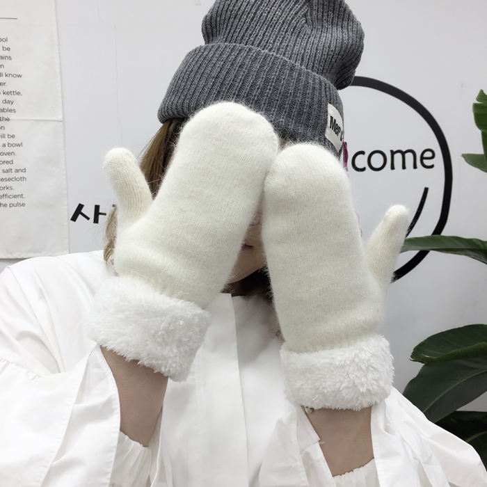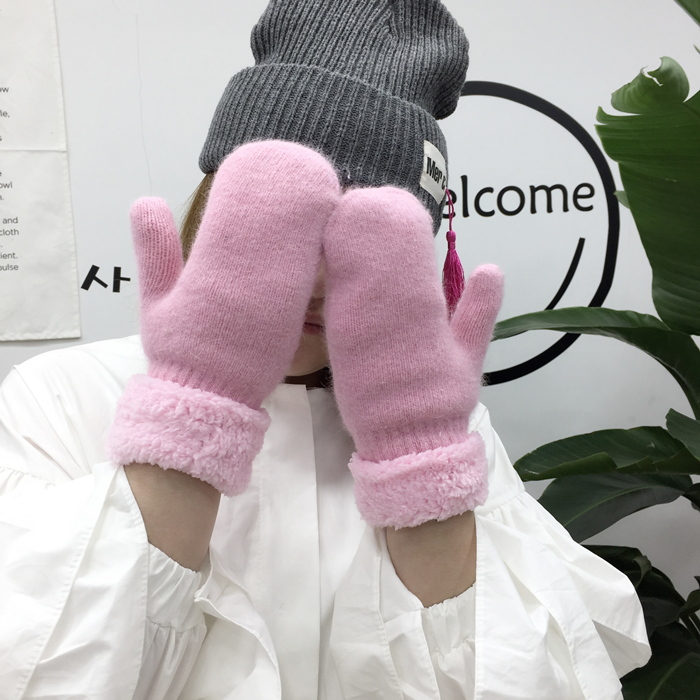 韓風chic情侶冬季兔毛全指手套保暖加厚雙層毛絨手套男女韓版手套1入