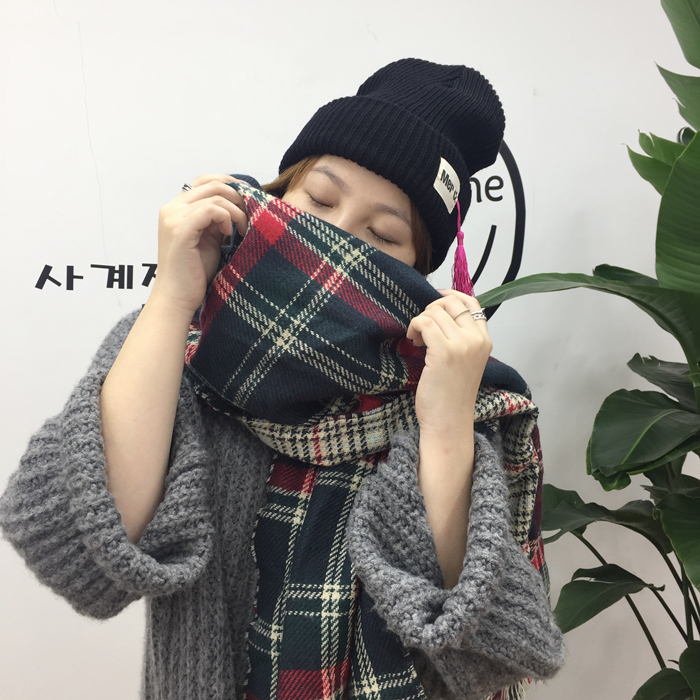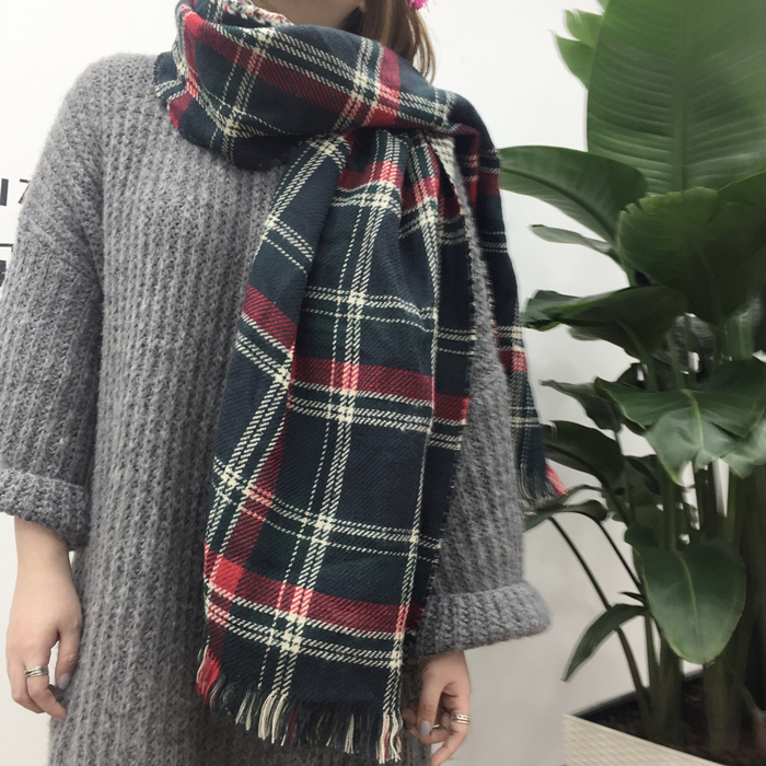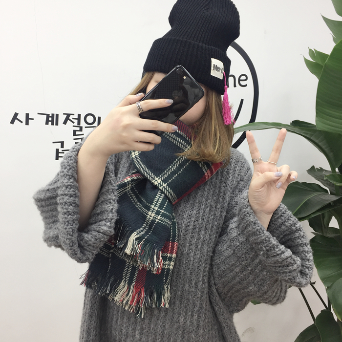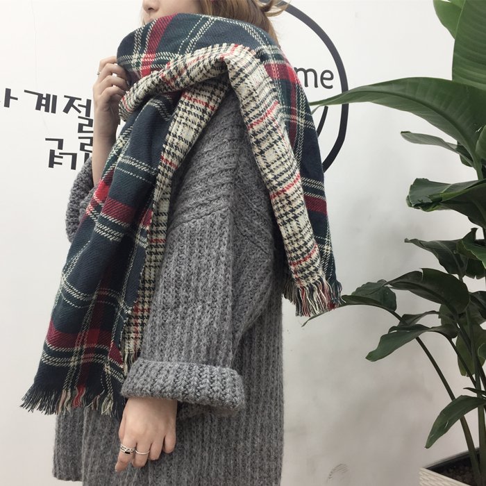韓國原宿百搭冬季超長復古雙面格子圍巾男女新款學生加厚保暖圍脖1入