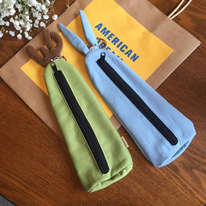 韓國原宿卡通動物帆布筆袋創意布藝可愛小清新軟妹學生文具收納袋1入