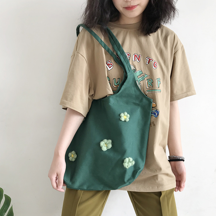 包包上面的花朵都是手工毛線勾花的~