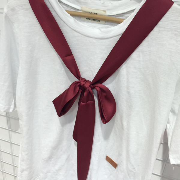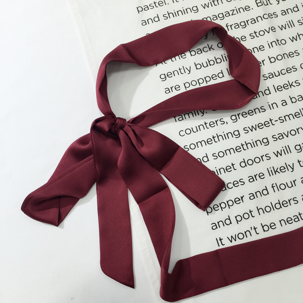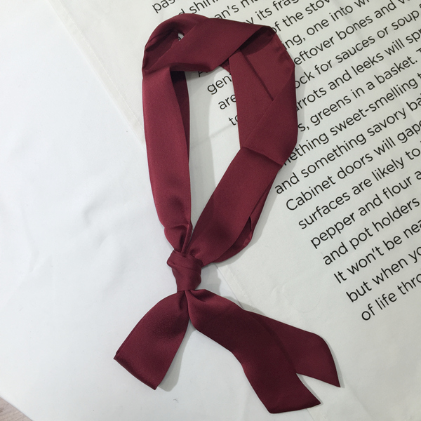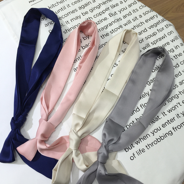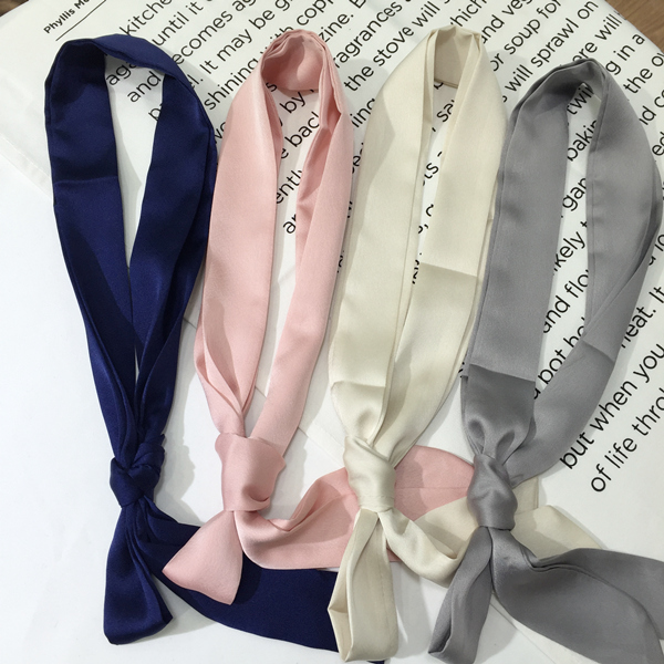 韓國原宿日系文藝仿綢緞超長緞面窄領巾簡約腰帶細長百搭絲巾1入