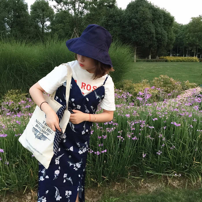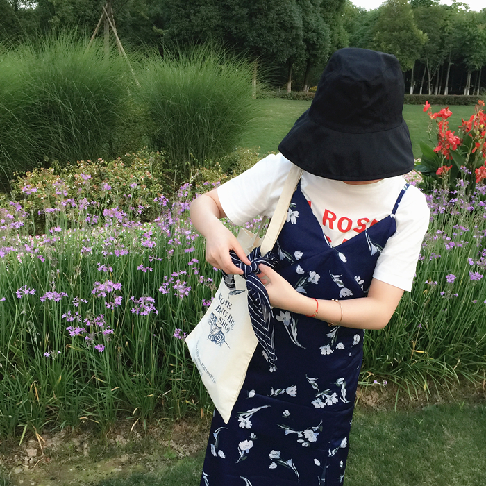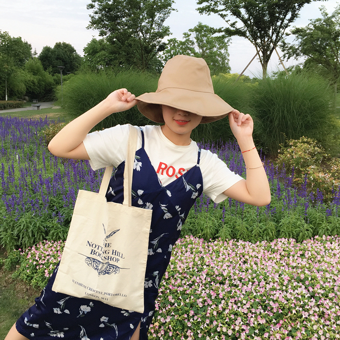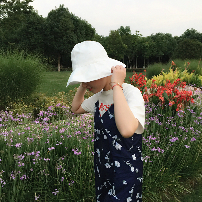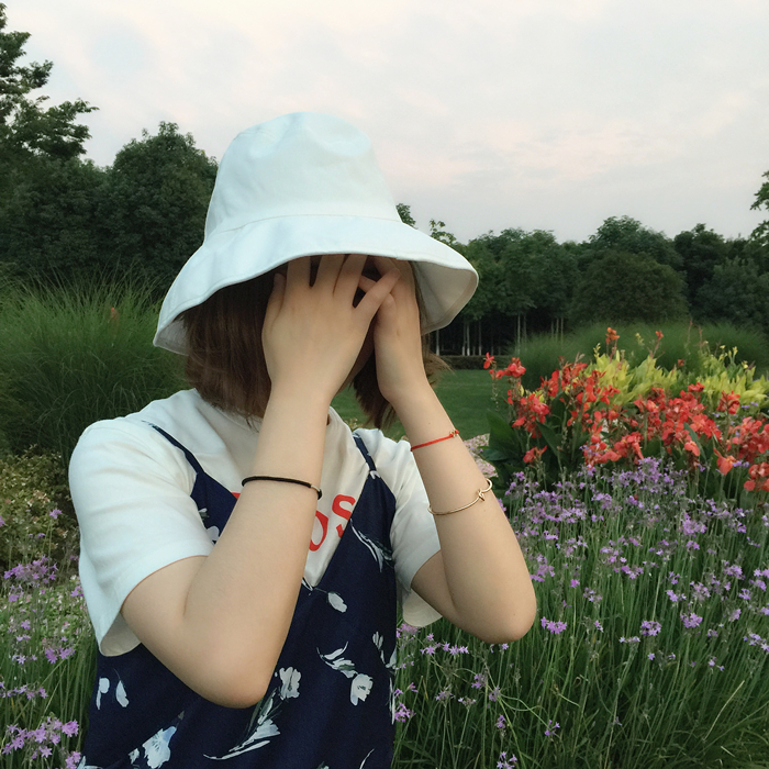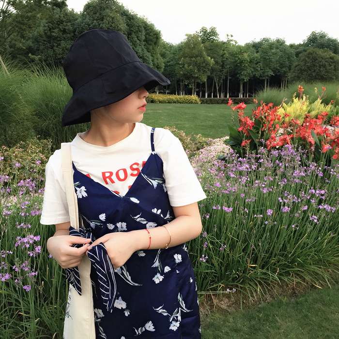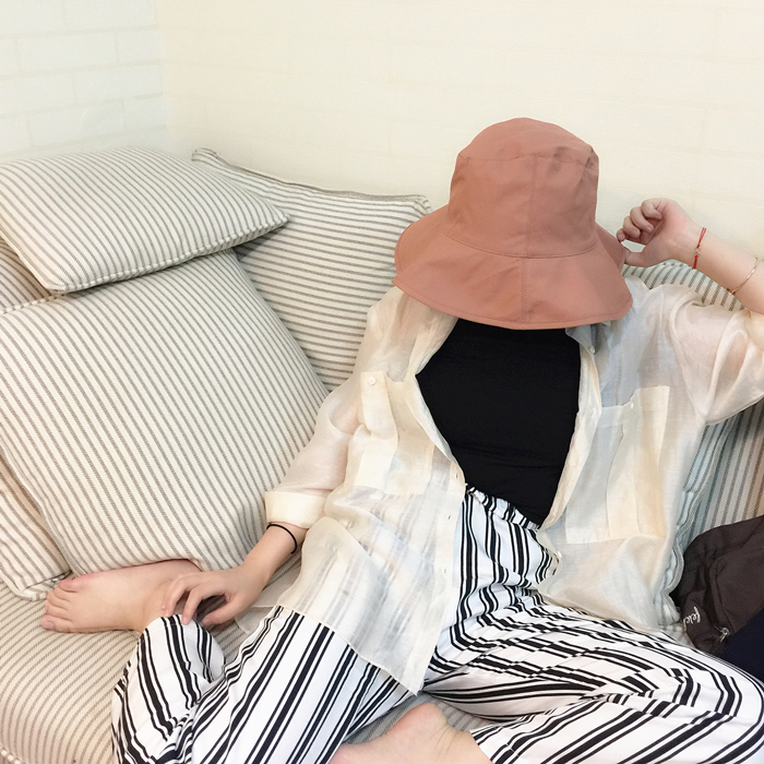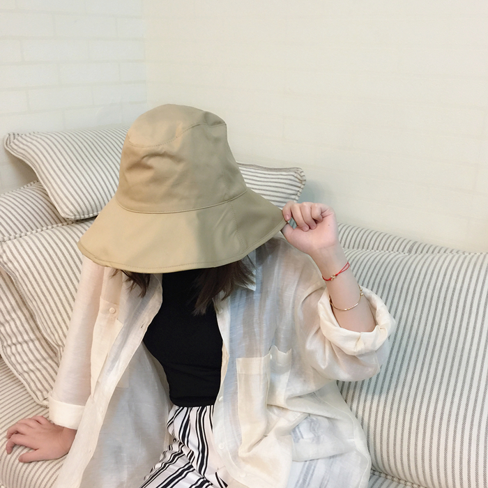 韓國原宿chic冷淡風純色大檐漁夫帽子夏天太陽帽盆帽防曬遮陽帽女1入