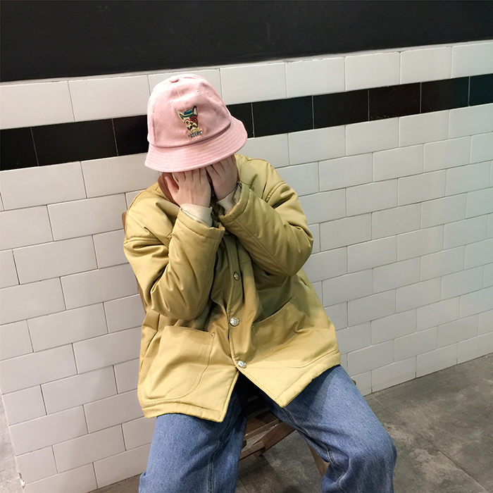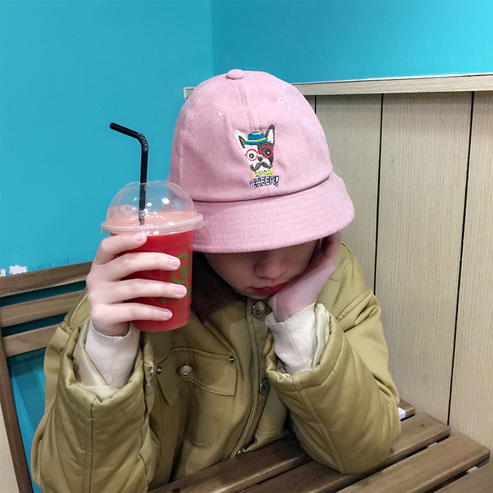 韓國原宿潮軟妹卡通漁夫帽女可愛小狗狗防?遮陽帽子日系學生盆帽1入