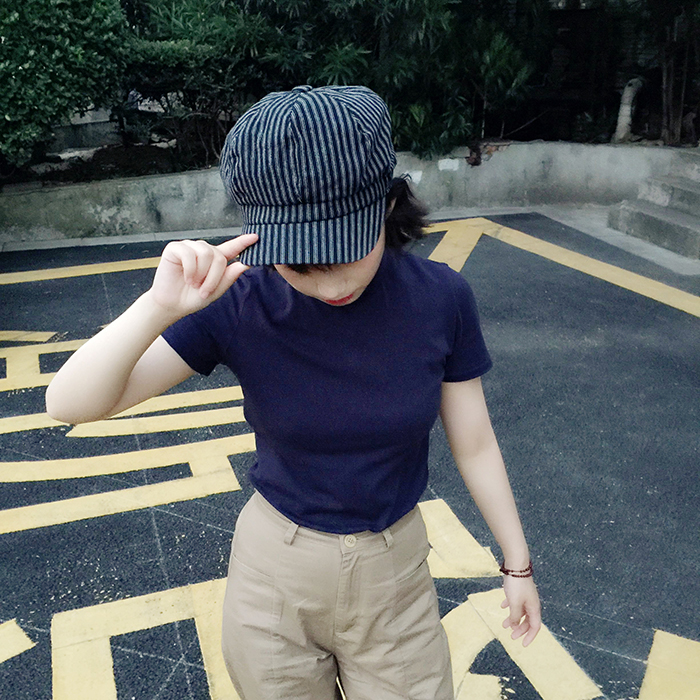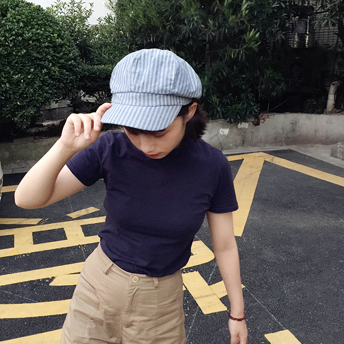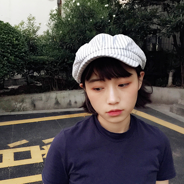 韓國文藝小清新chic風八角帽甜美百搭條紋鴨舌帽貝雷帽ins帽子女1入