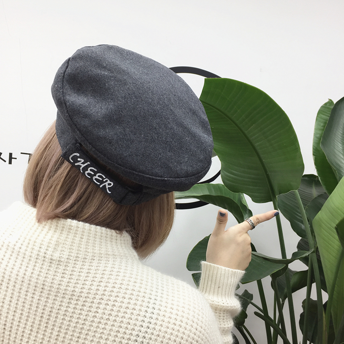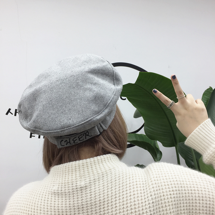 韓風chic森系文藝魔術貼字母貝雷帽女學生原宿個性毛呢南瓜帽子女1入