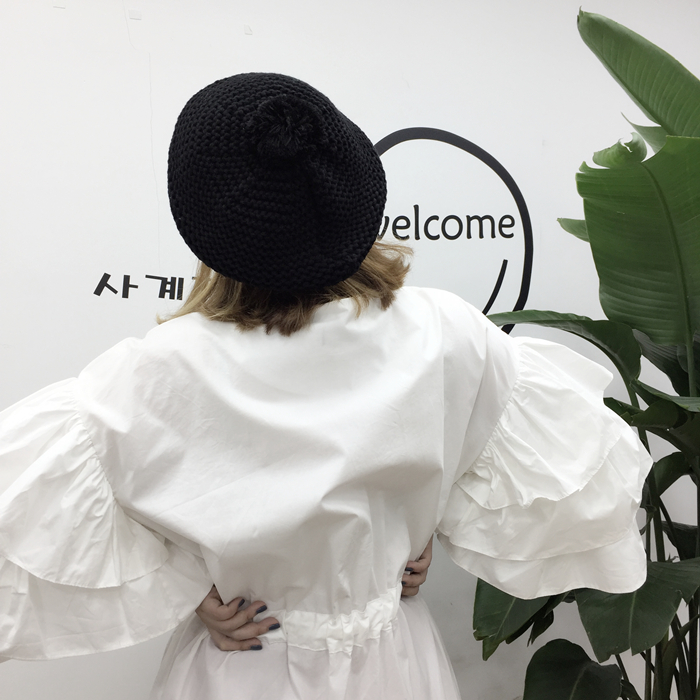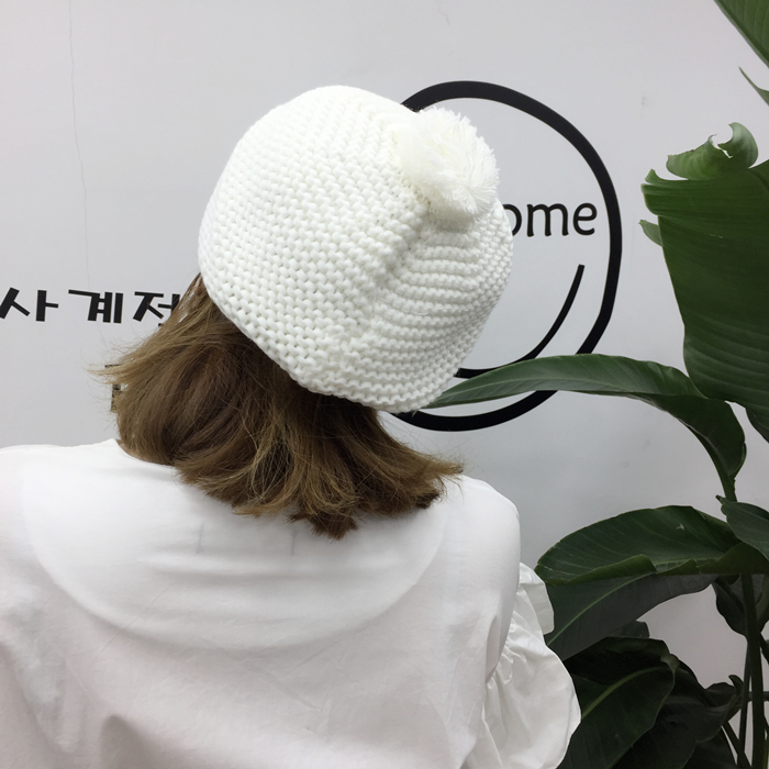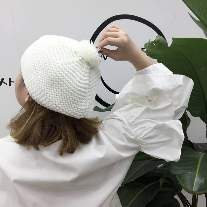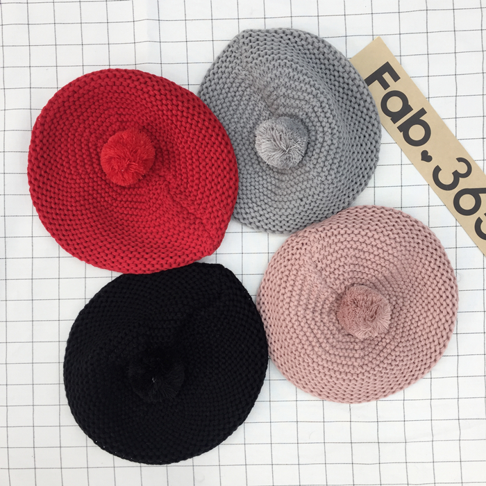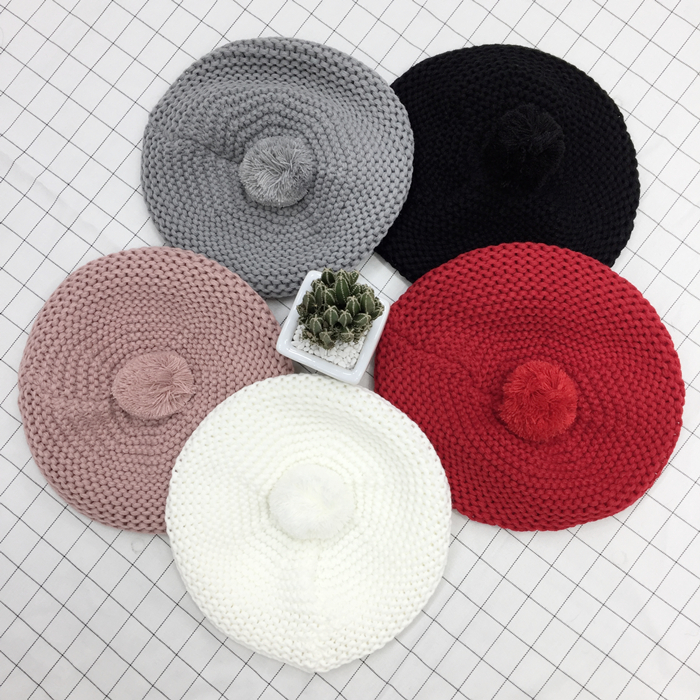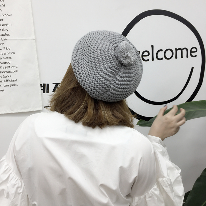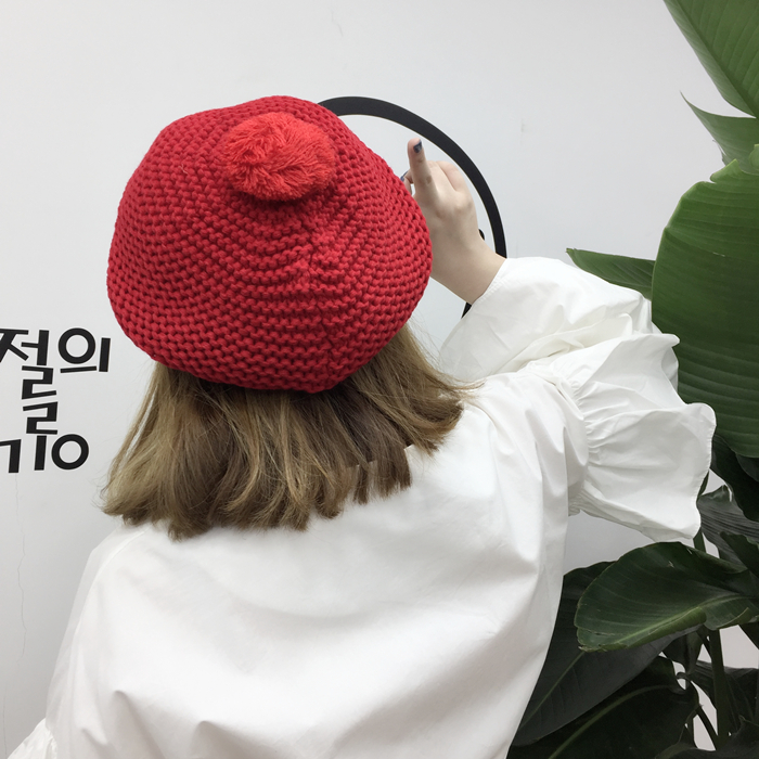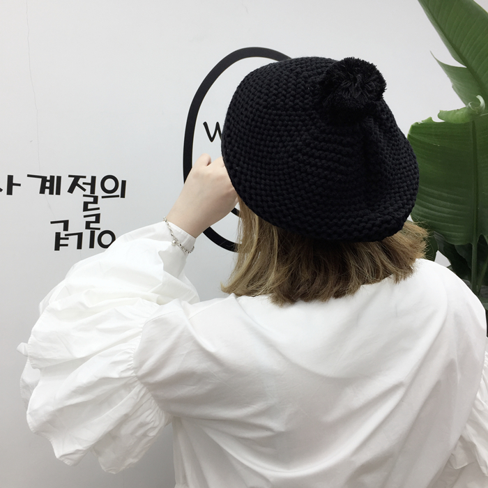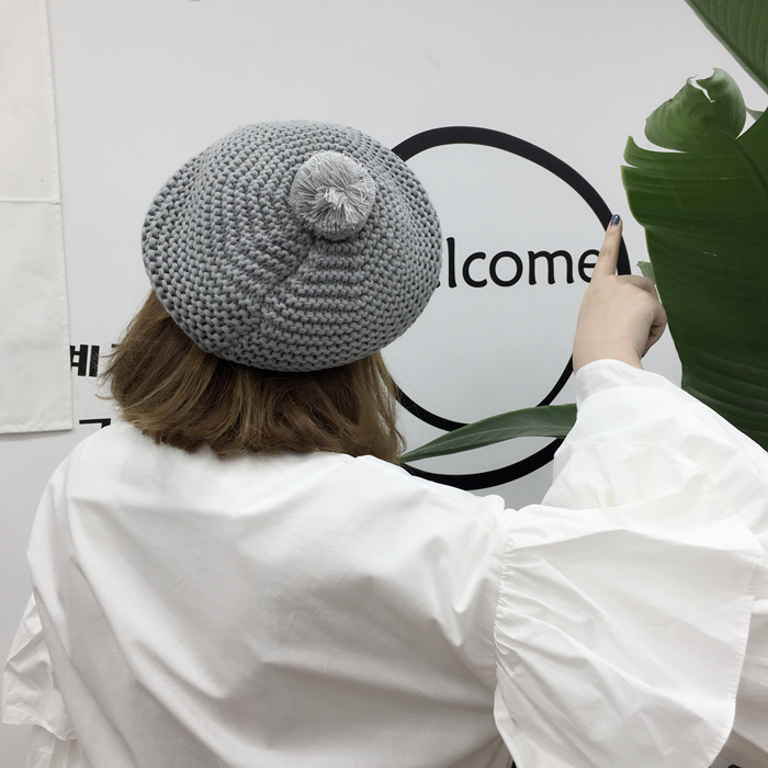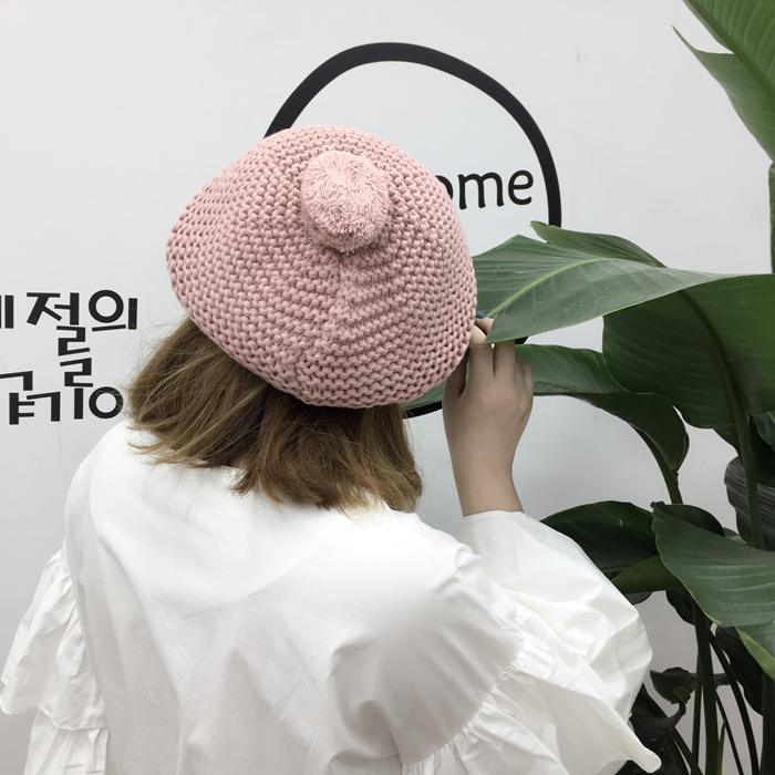 韓版復古簡約冬季毛線針織貝雷帽女加厚保暖畫家帽學生毛球南瓜帽1入