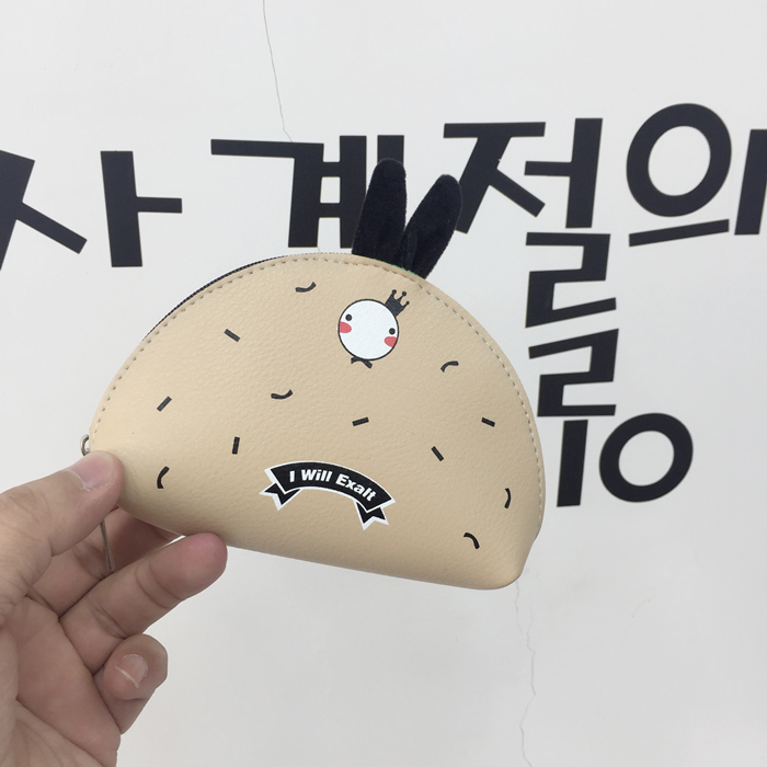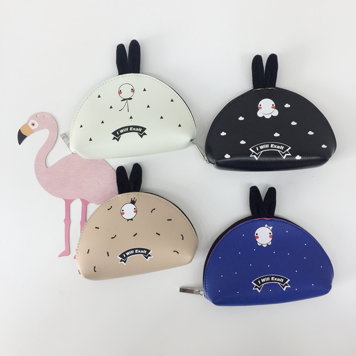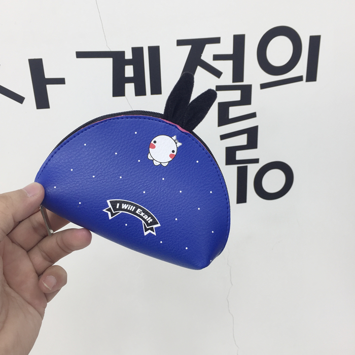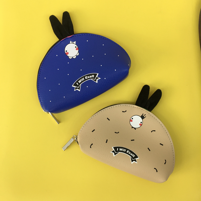 韓國卡通可愛半圓小兔子迷你零錢包硬幣包鑰匙包小清新學生手拿包1入
