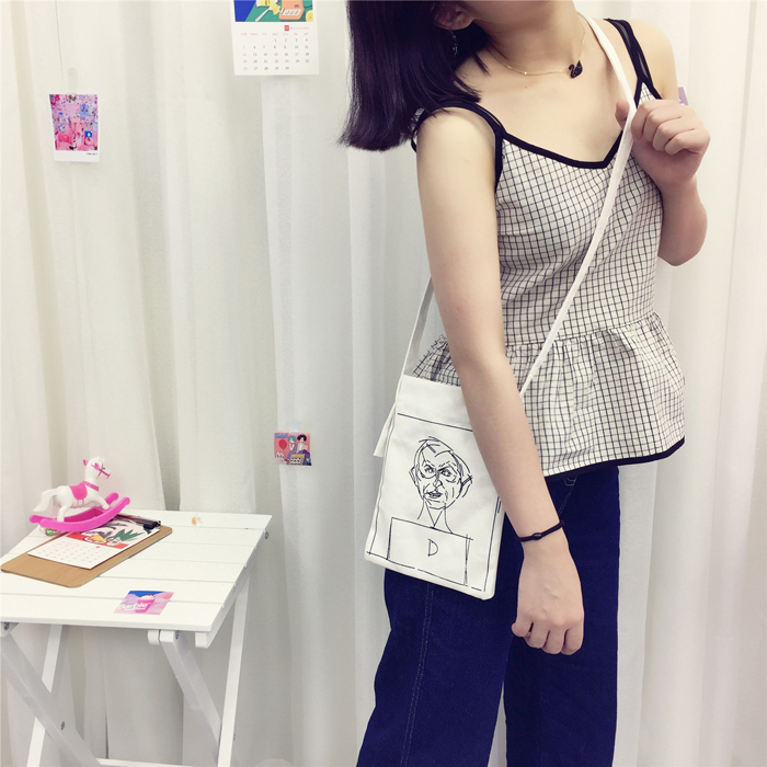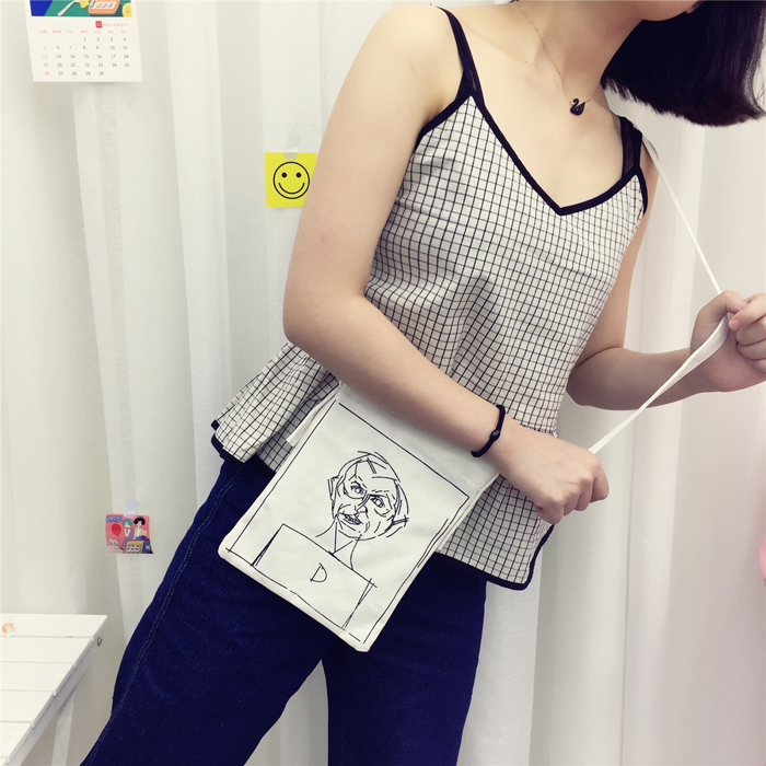 包包是涂鴉印花的的哦~閉合方式是磁扣的