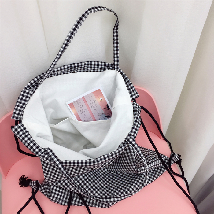 包包的閉合方式是抽帶的 帶子是連著雙肩帶的
