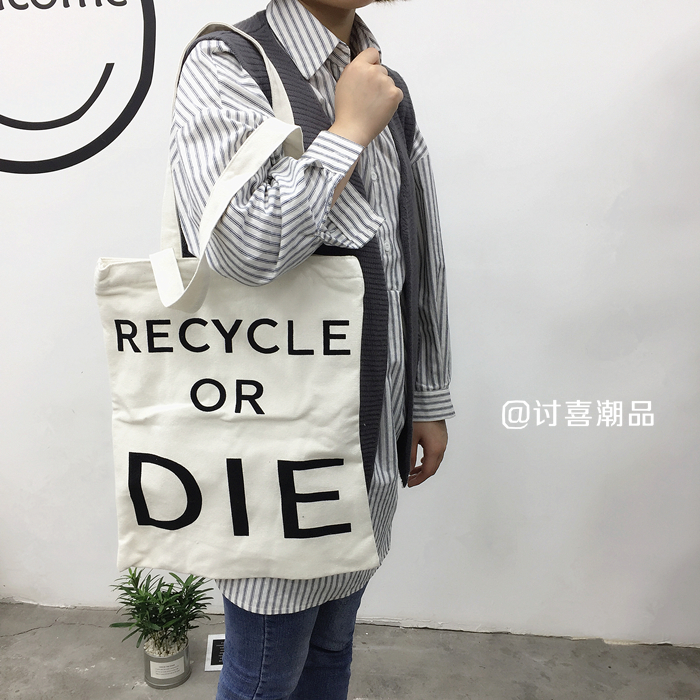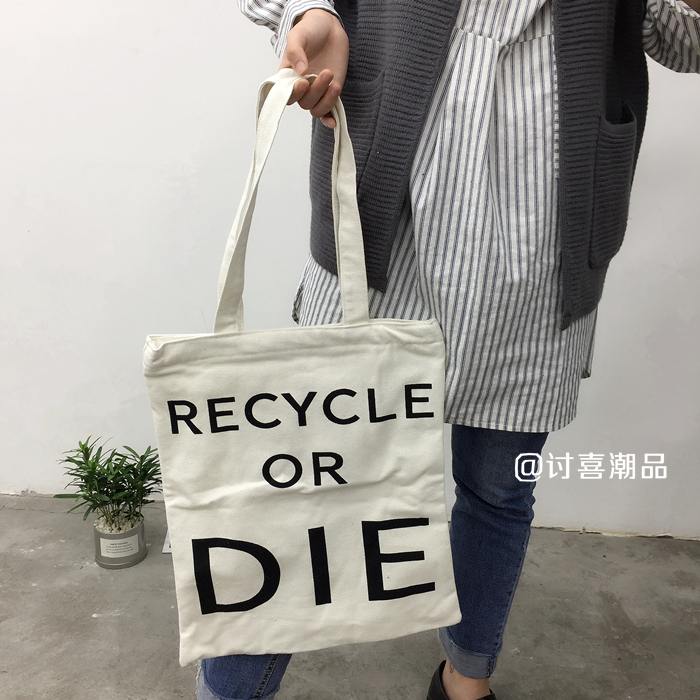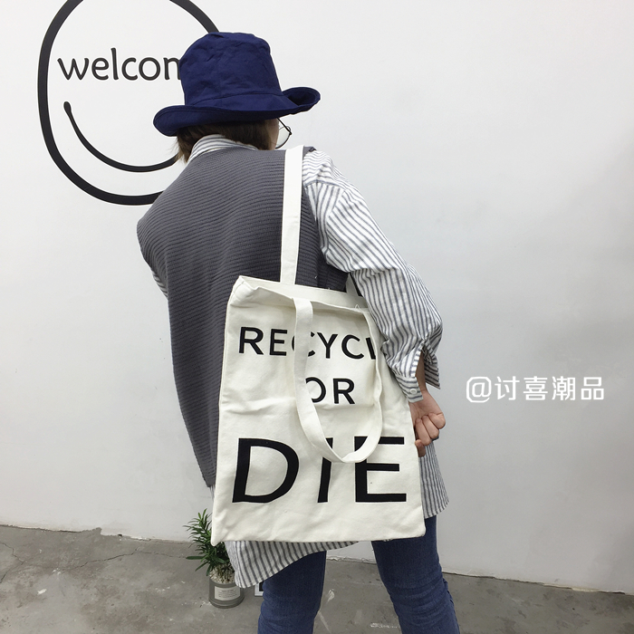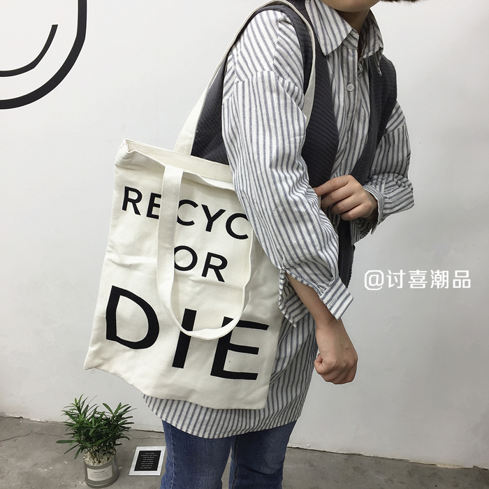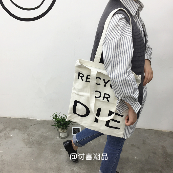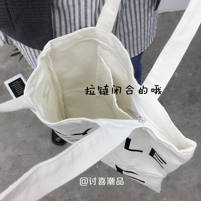 韓國簡約學院風印花字母帆布包單肩包清新學生休閑購物袋百搭布包1入