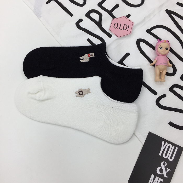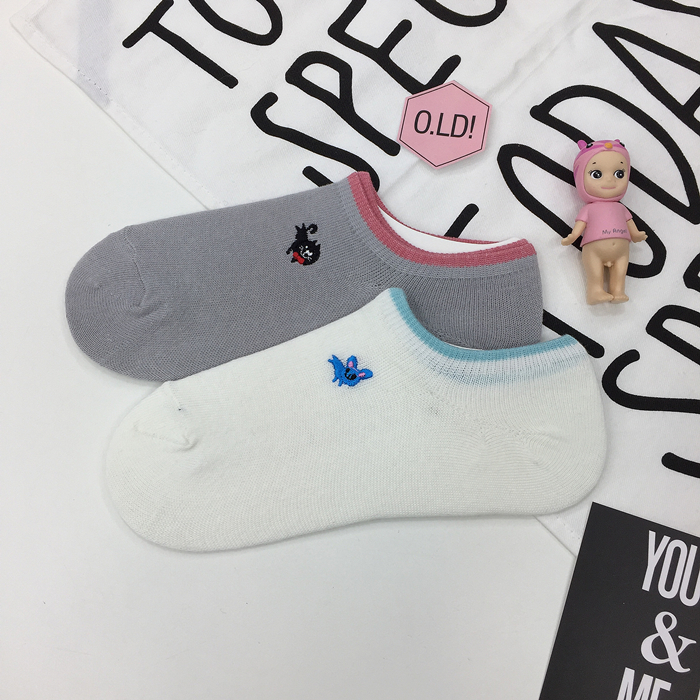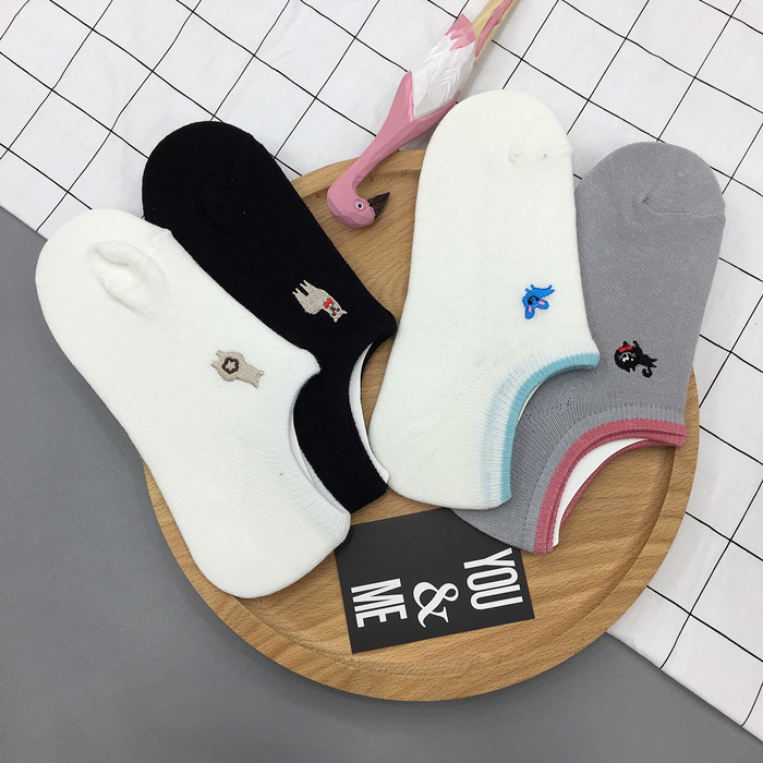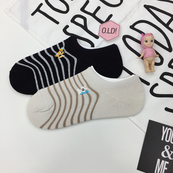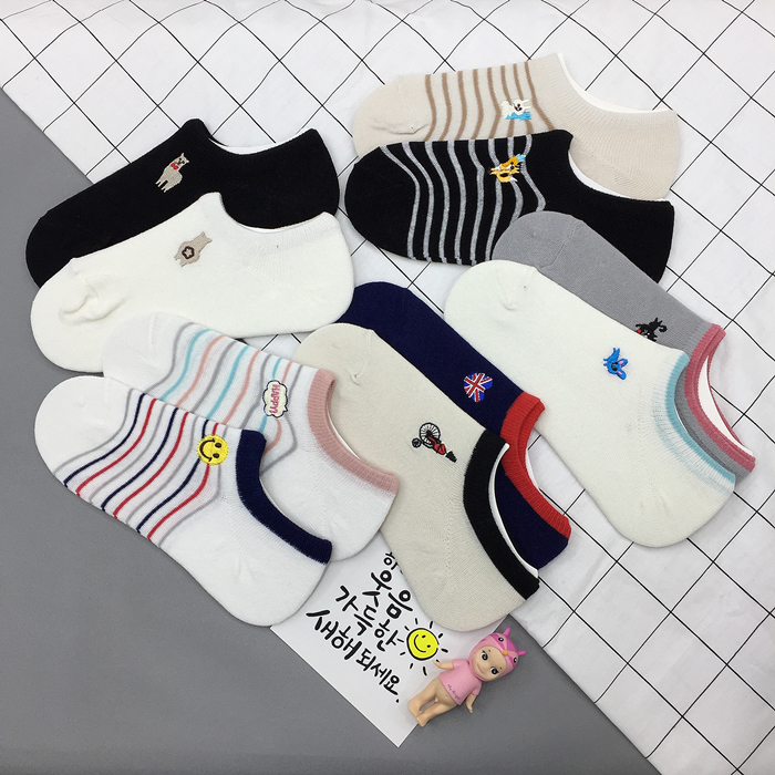 韓國卡通條紋小動物可愛刺繡笑臉短襪女船襪情侶運動襪套裝組合襪1入