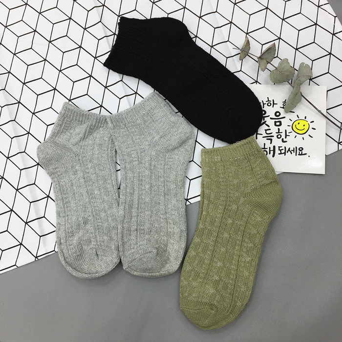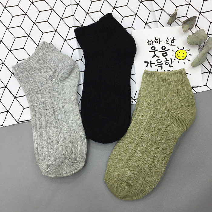 韓國原宿港風純色粗線短襪女復古百搭運動低幫船襪男女情侶潮襪子1入