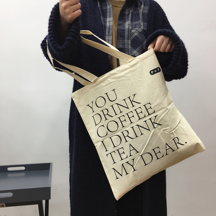 韓國港風chic原宿字母單肩包女生帆布包韓版新款購物袋學生手提包1入