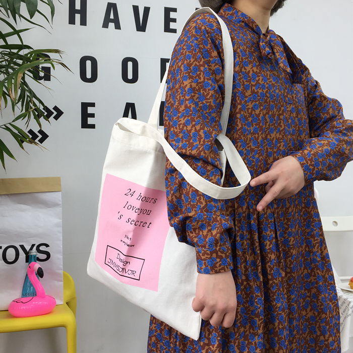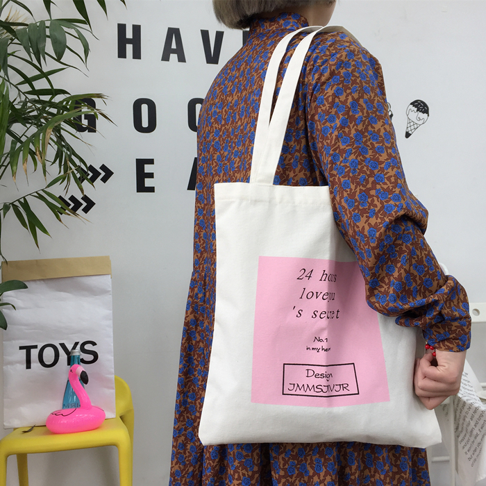 韓風原宿小清新日系印花帆布單肩包韓版新款單肩包購物手提袋女包1入