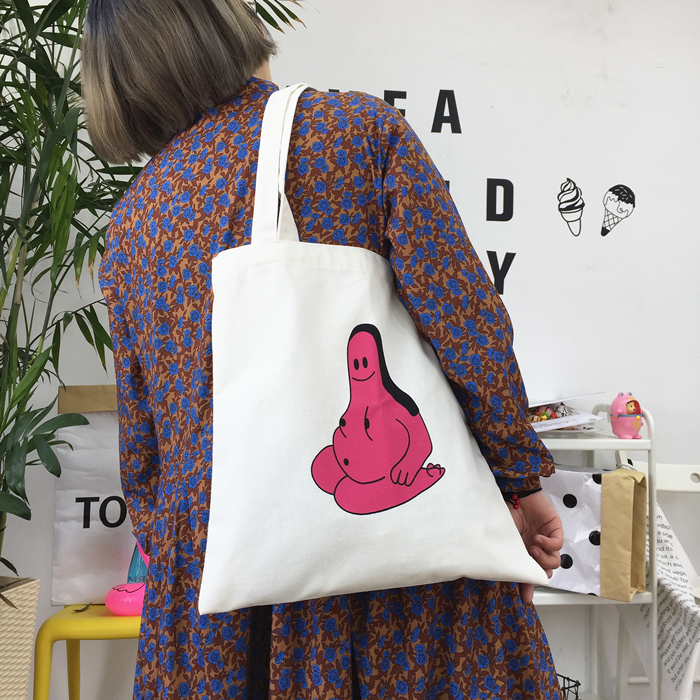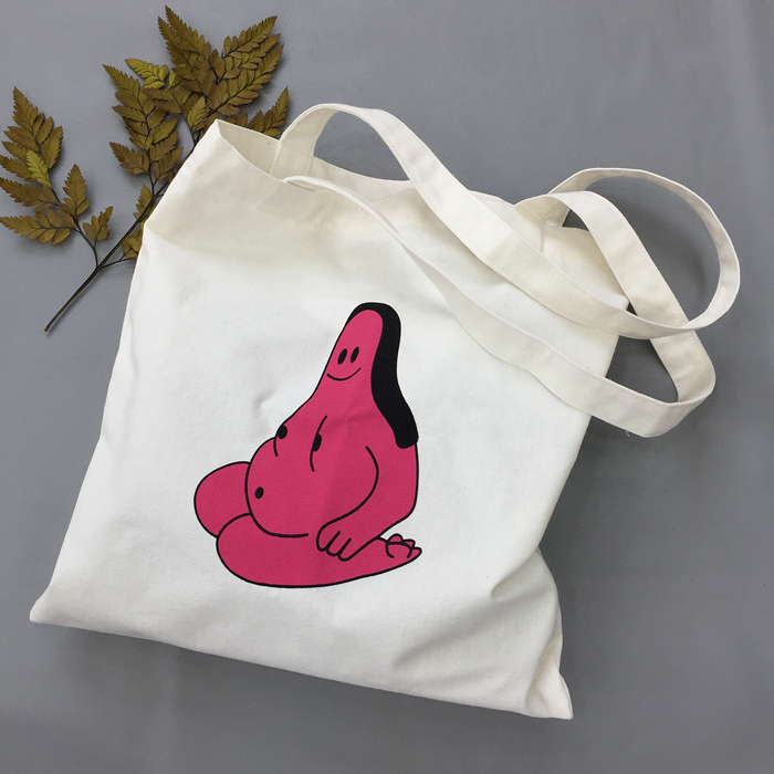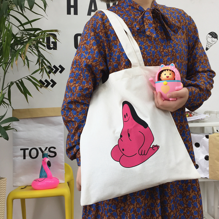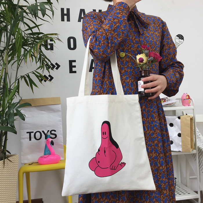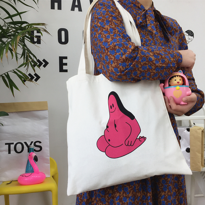韓國原宿chic學院風卡通帆布包學生清新單肩包女購物袋軟妹手提包1入