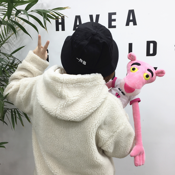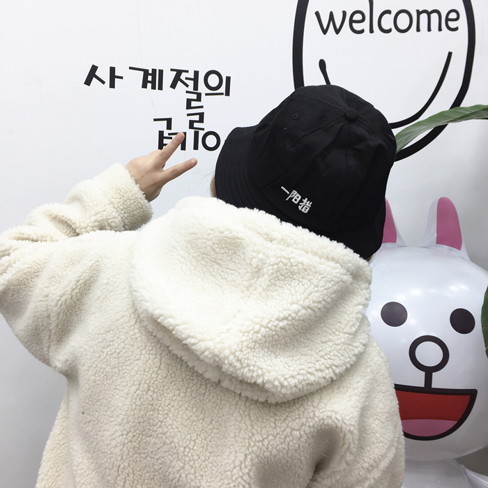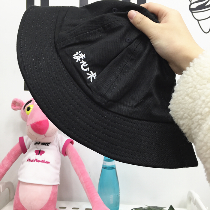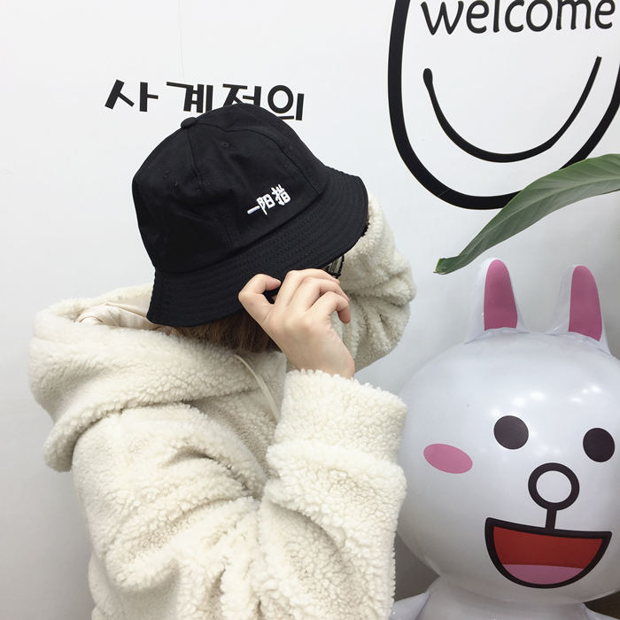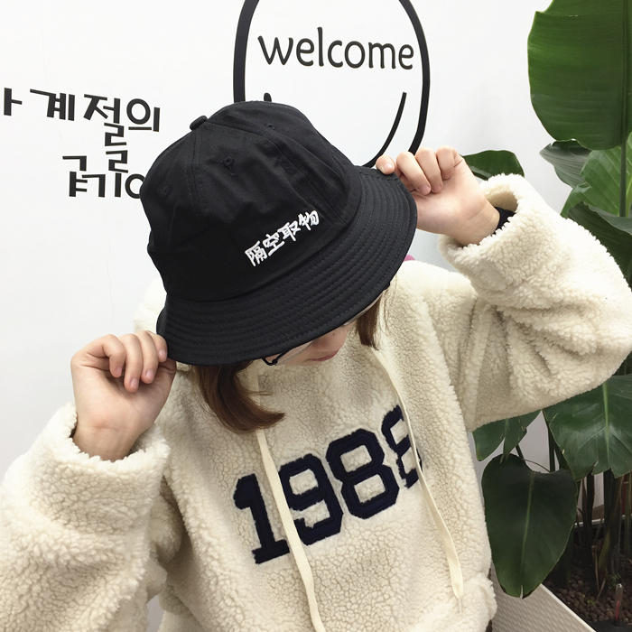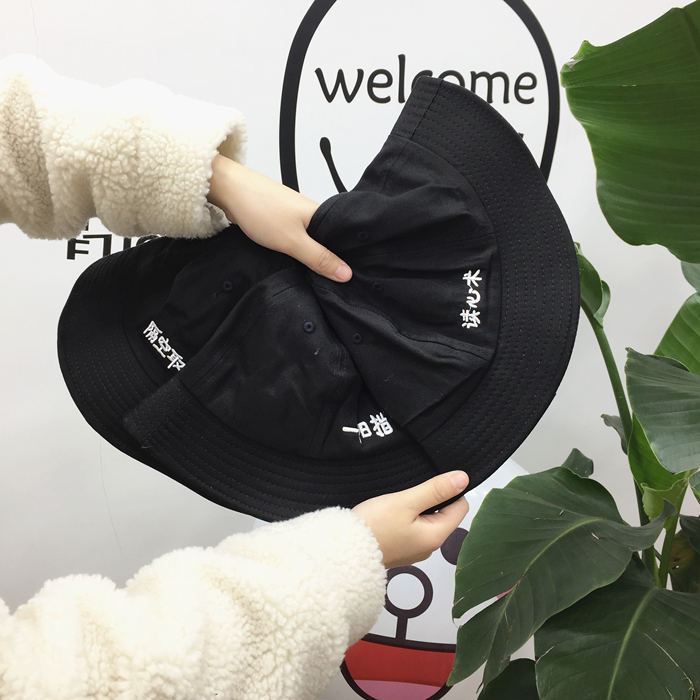 韓國原宿新款港味刺繡文字漁夫帽女日系帆布盆帽男女情侶遮陽帽子1入
