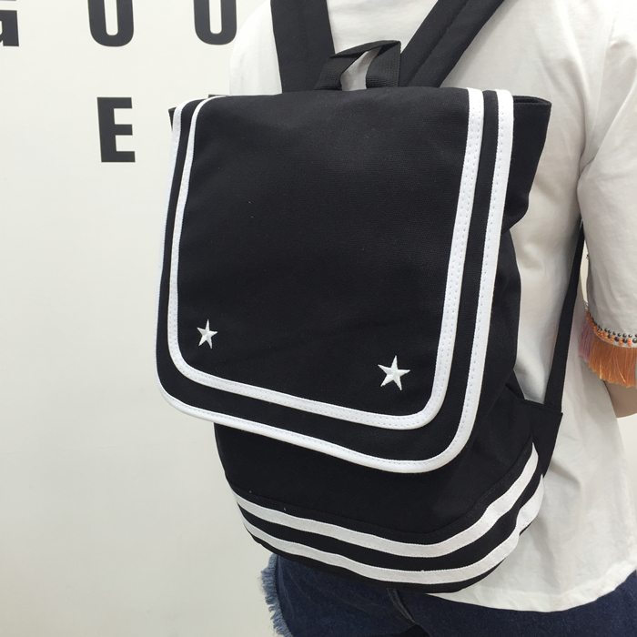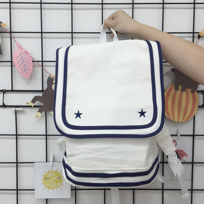 韓國原宿復古海軍學院風書包休閑學生雙肩包軟妹情侶旅游帆布背包1入