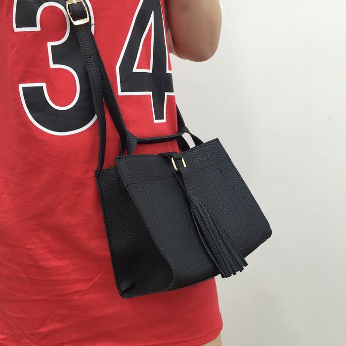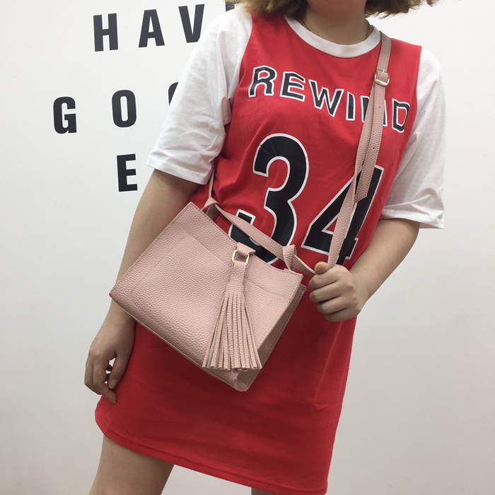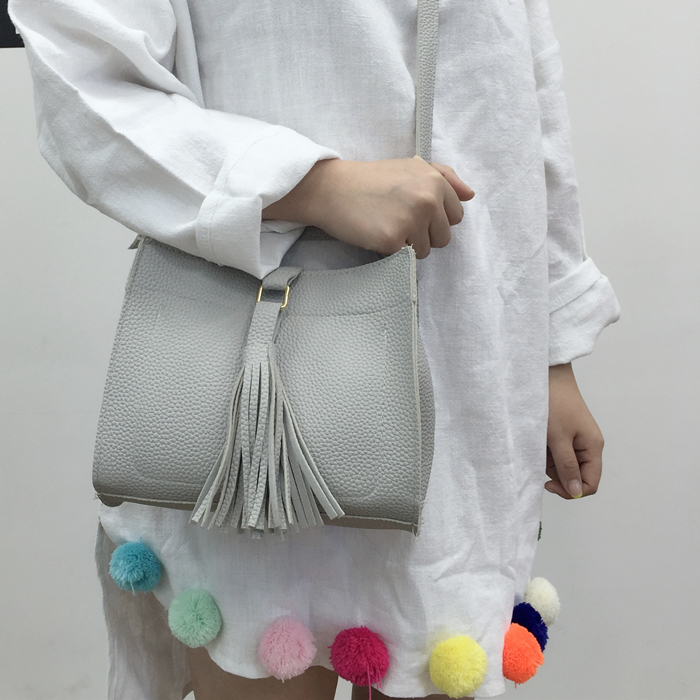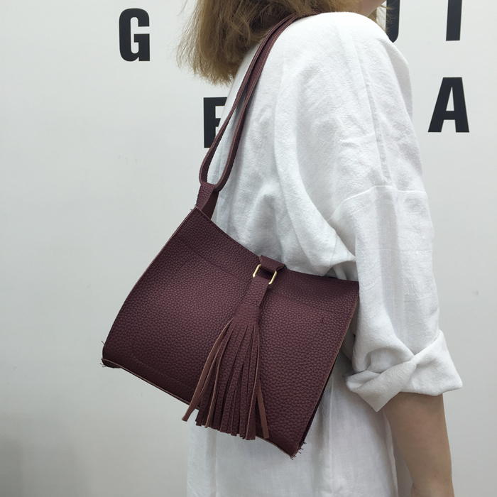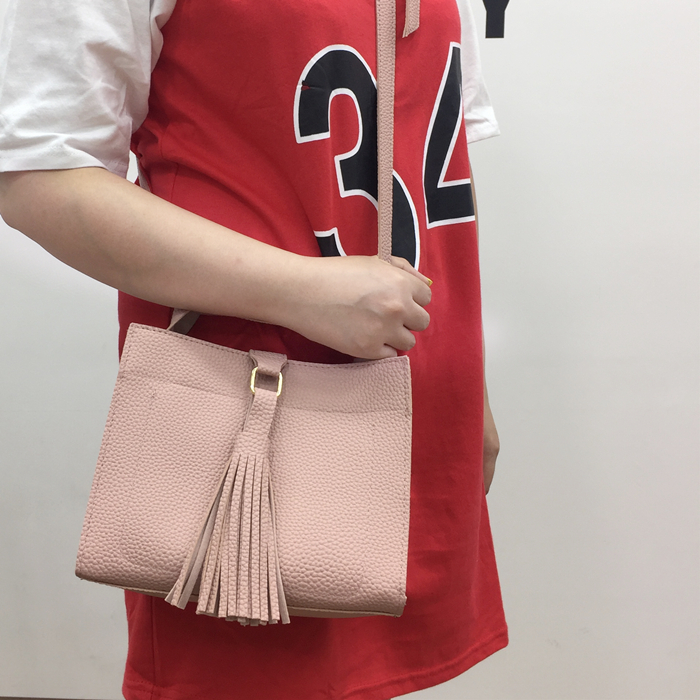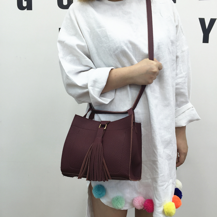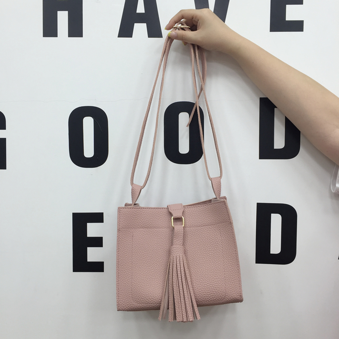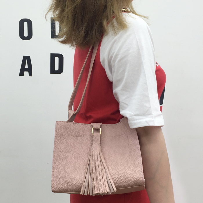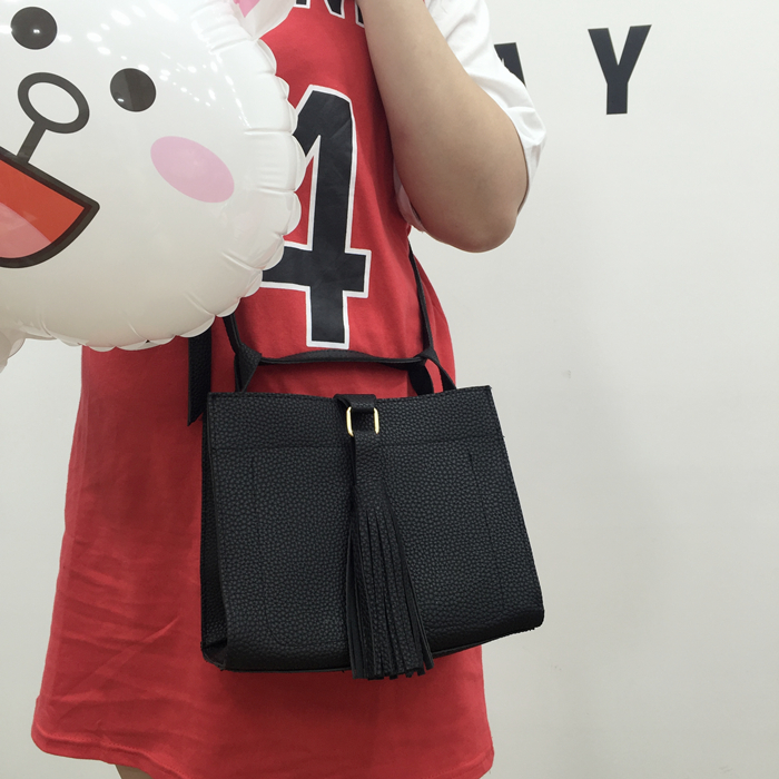 韓國復古原宿簡約流蘇斜挎包立體單肩包學院風軟妹百搭手提包女包1入