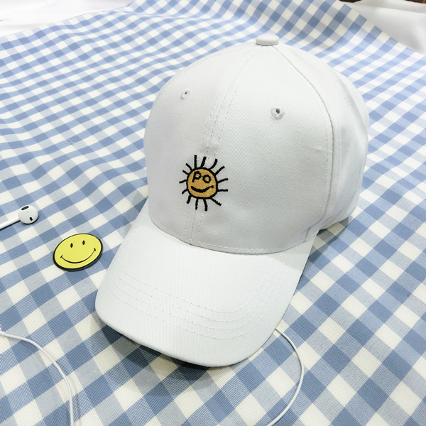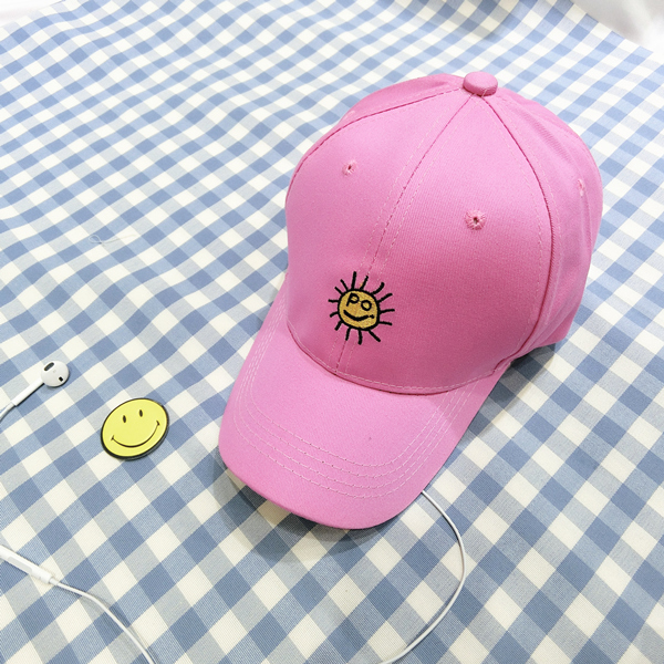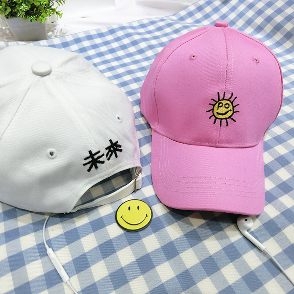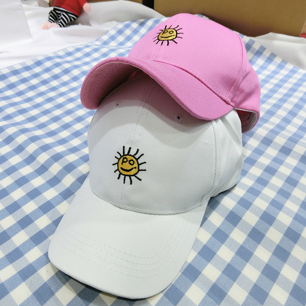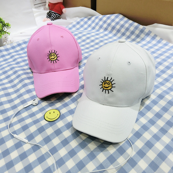 韓版太陽刺繡帽子夏季女士棒球帽戶外嘻哈帽鴨舌帽百搭情侶遮陽帽1入
