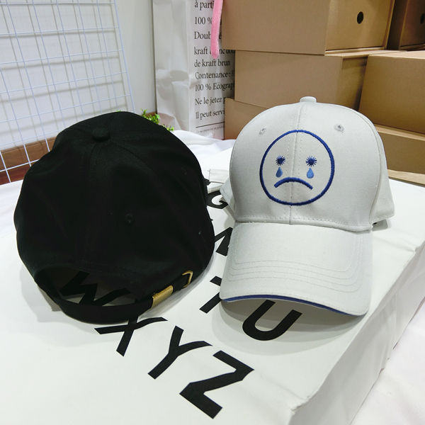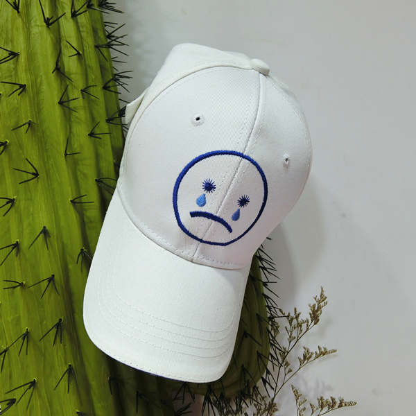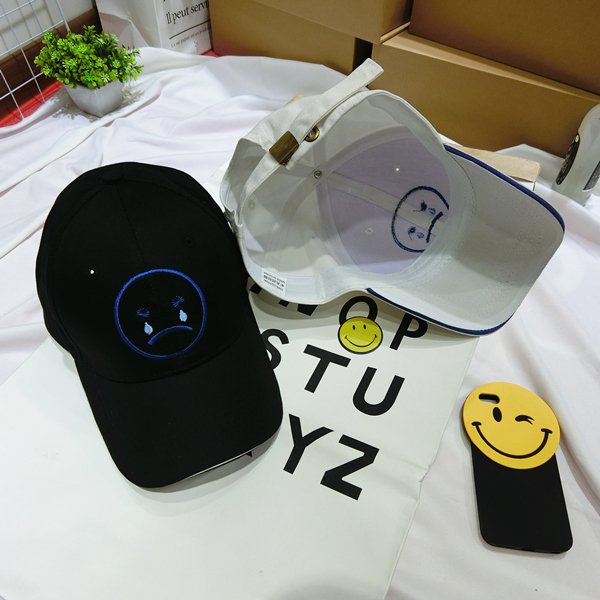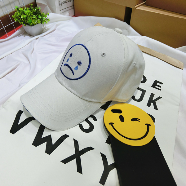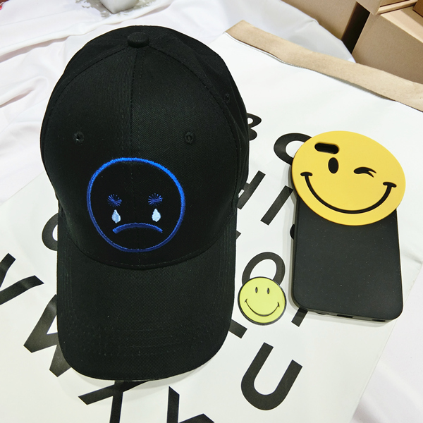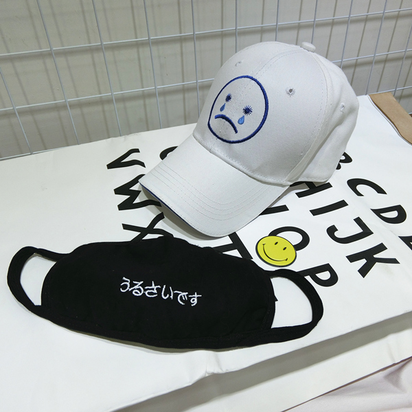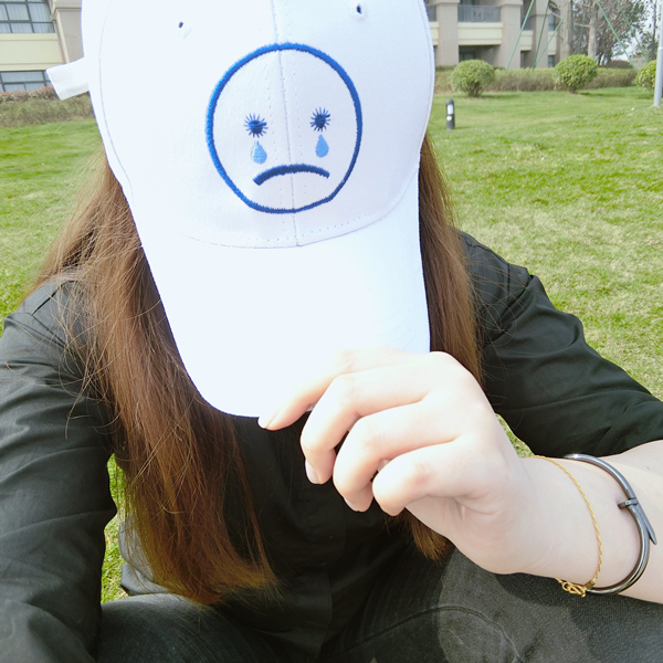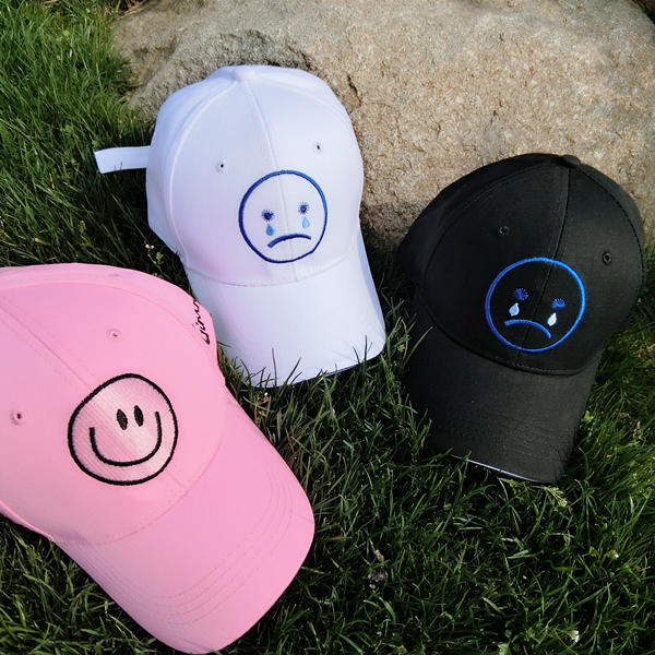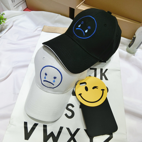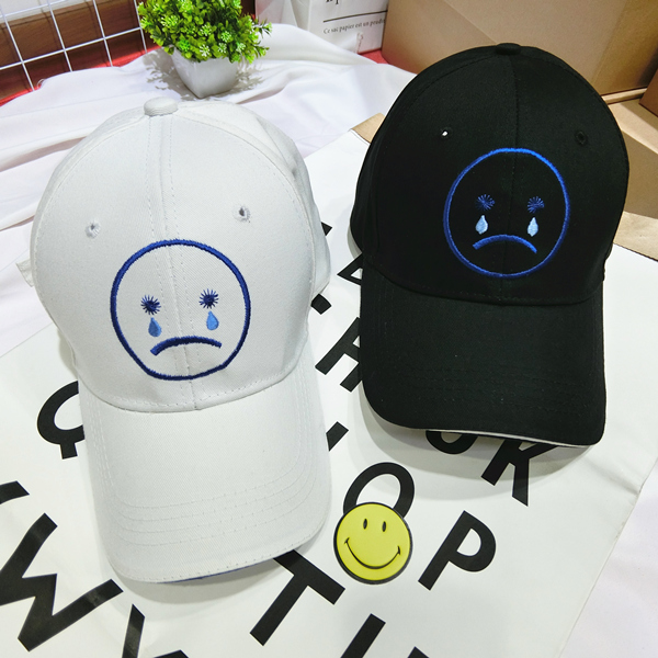 韓國原宿卡通哭臉刺繡字母鴨舌帽情侶彎檐遮陽棒球帽韓版男女帽子1入