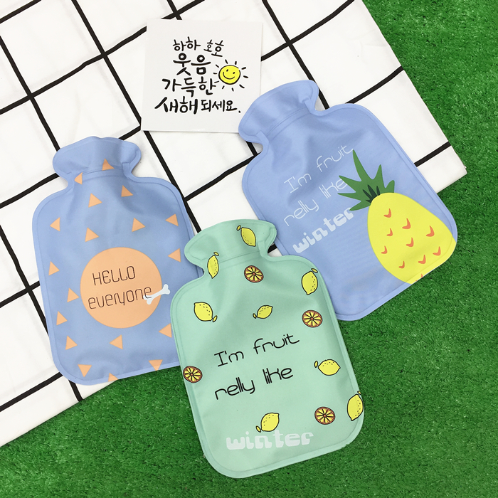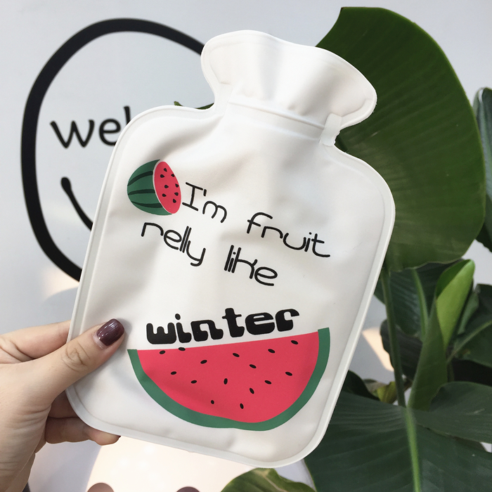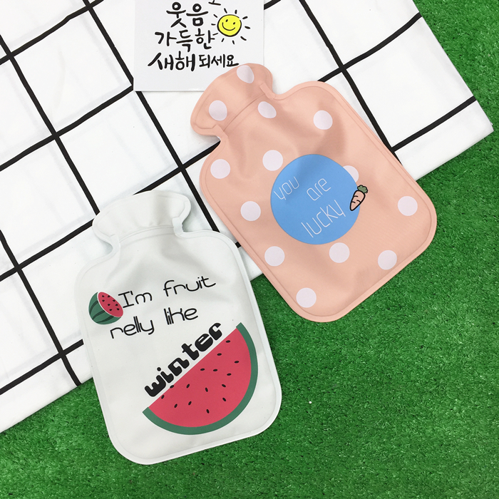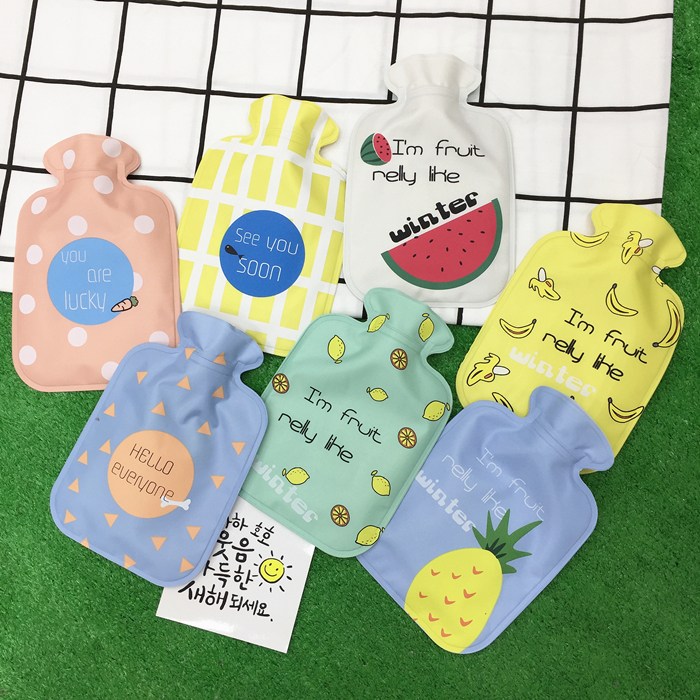 韓國可愛卡通水果印花熱水袋灌注水防爆冬季暖手寶便攜迷你熱水袋1入