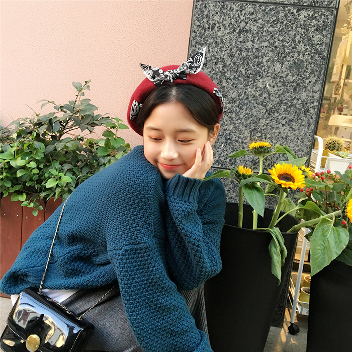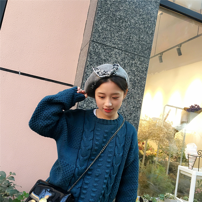韓國chic甜美少女心蝴蝶結貝雷帽學生簡約秋冬畫家帽日系原宿帽子1入