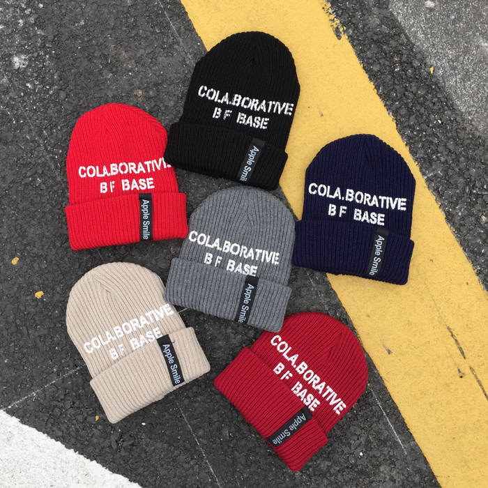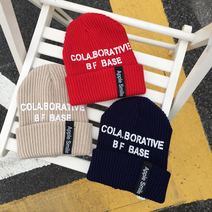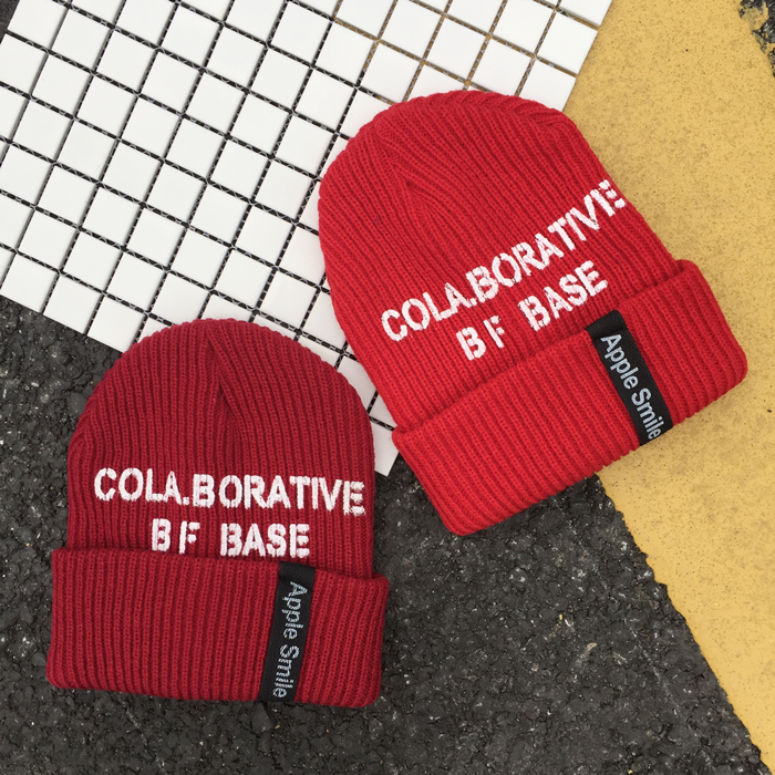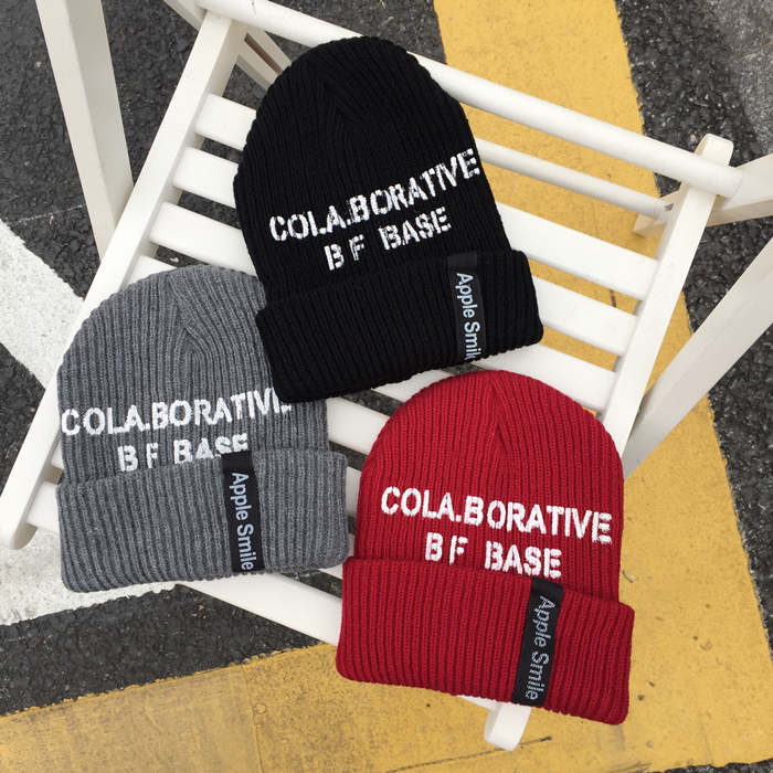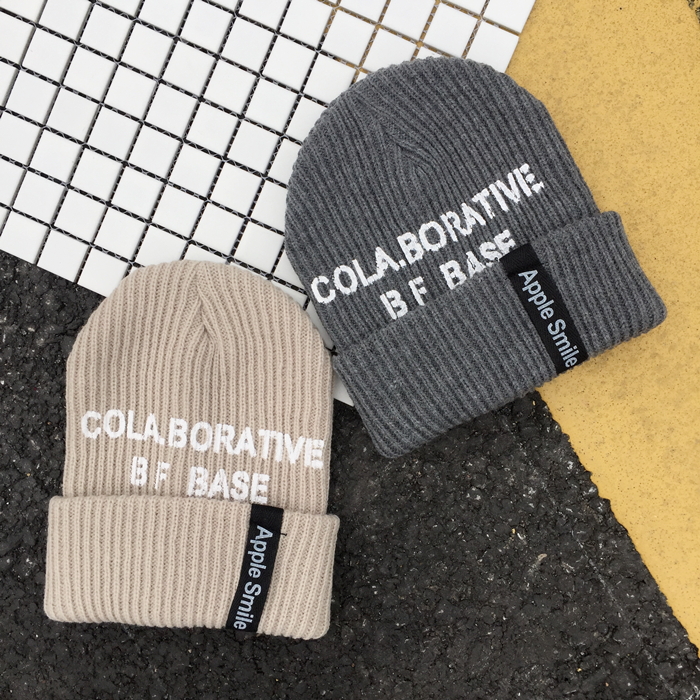 韓國原宿新款貼標字母毛線帽子男女秋冬季保暖護耳情侶套頭針織帽1入
