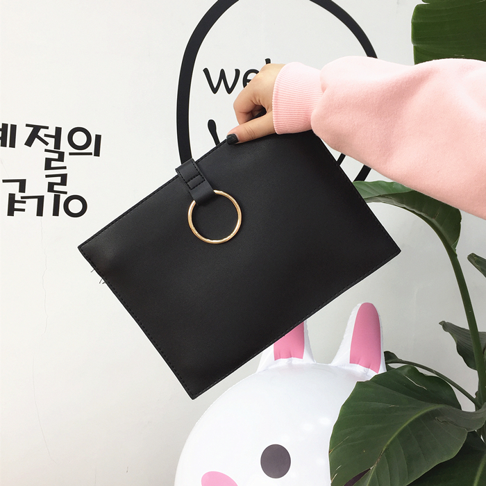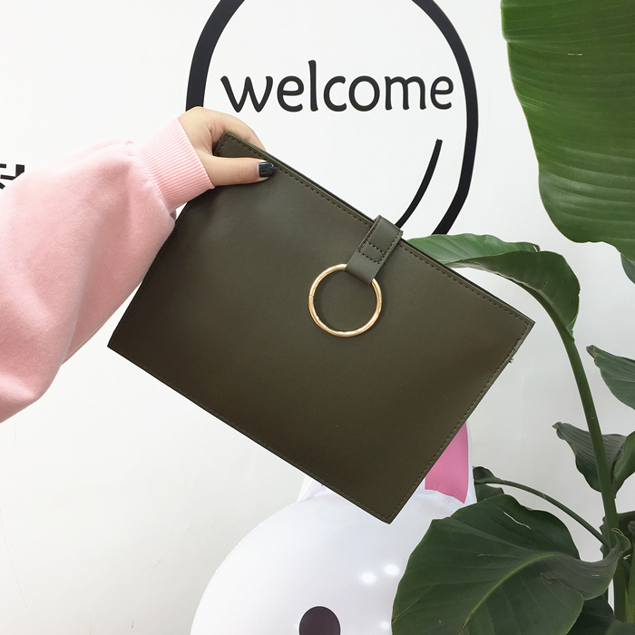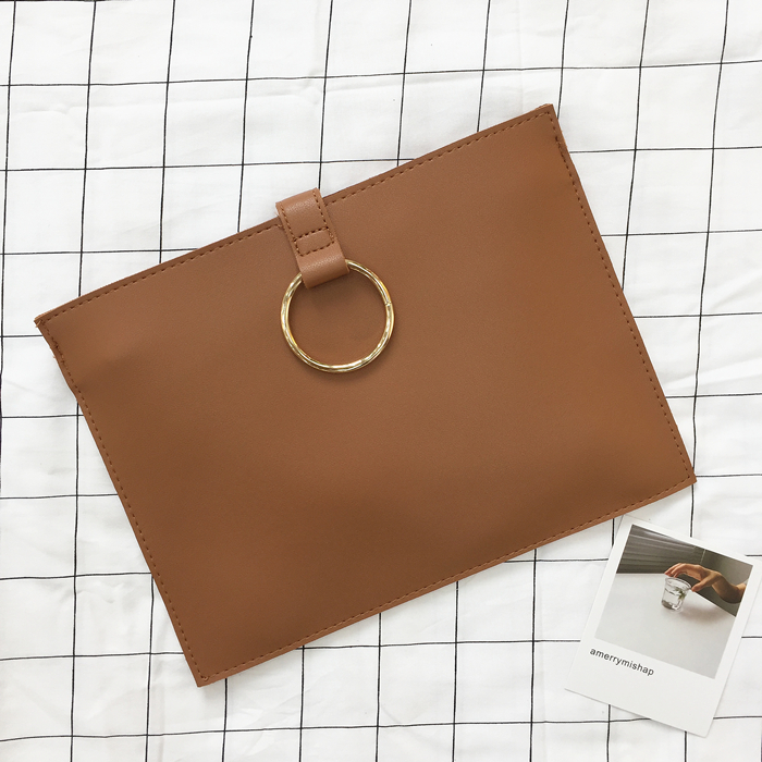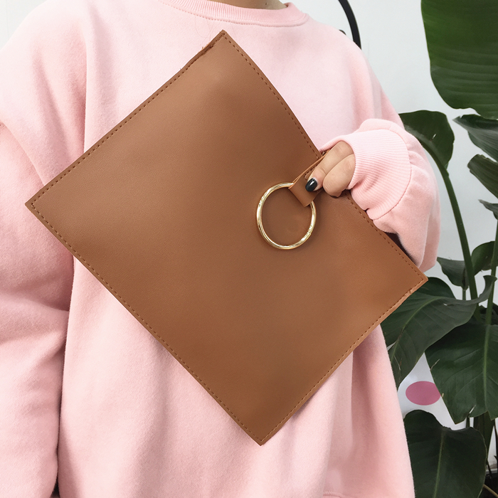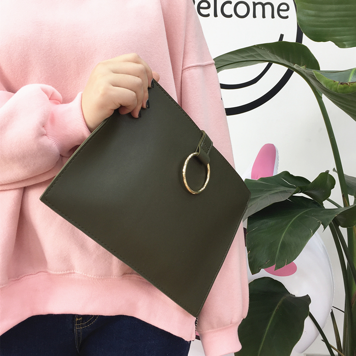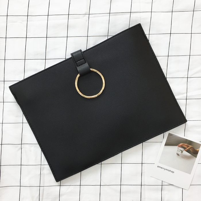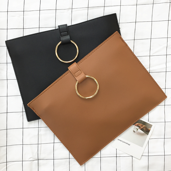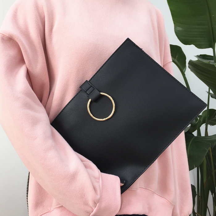 韓風chic百搭新款信封包簡約手拿包圓環手抓包女經典公文包小方包1入