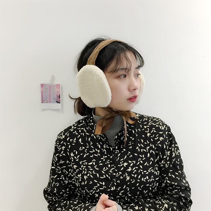 韓國chic冬季少女可愛甜美毛絨系帶保暖護耳耳罩防風耳包學生耳套1入