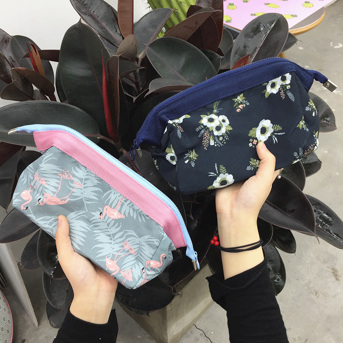 韓國小清新復古花朵女士日系森系便攜出差旅游收納包化妝包洗漱包1入