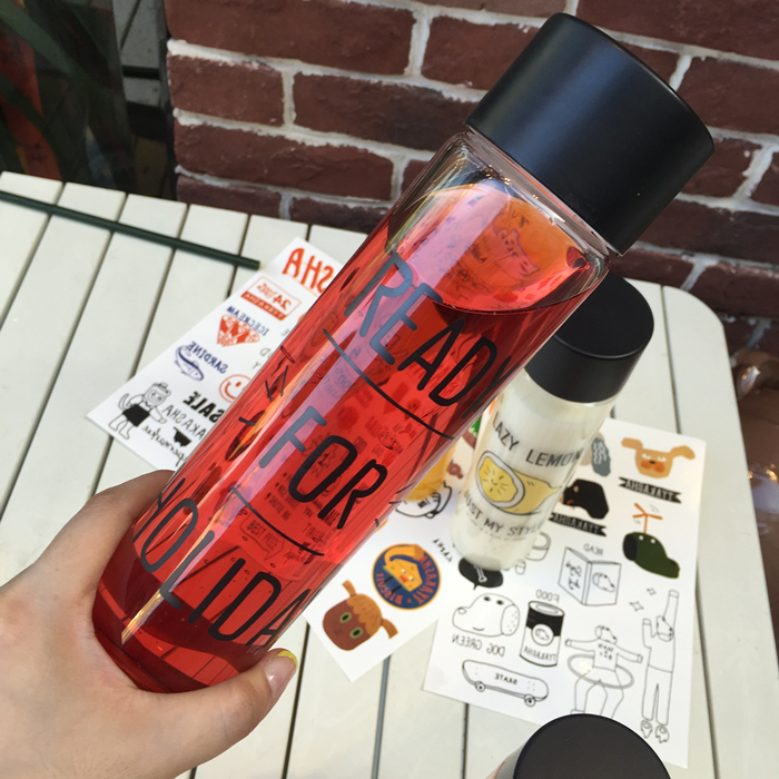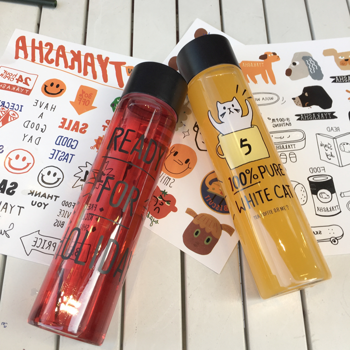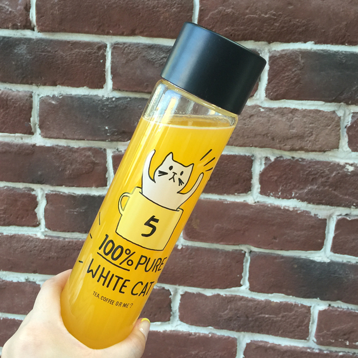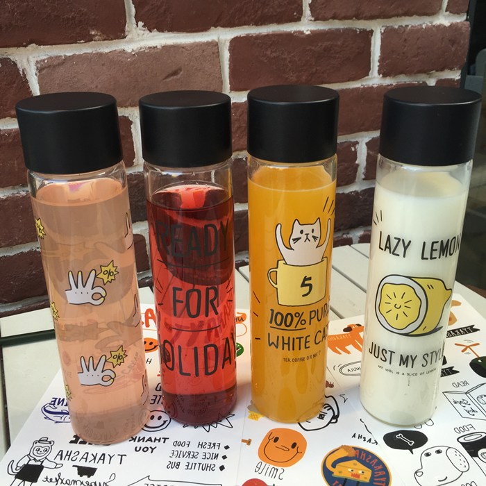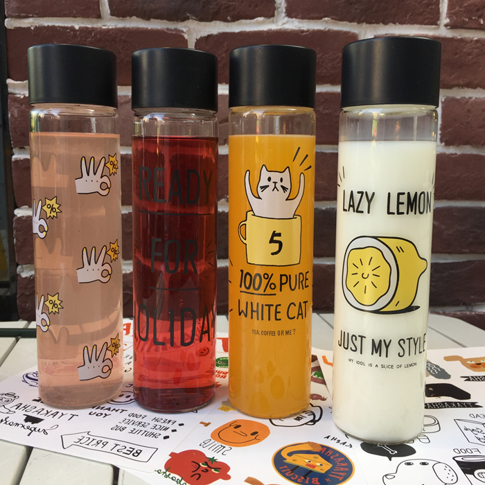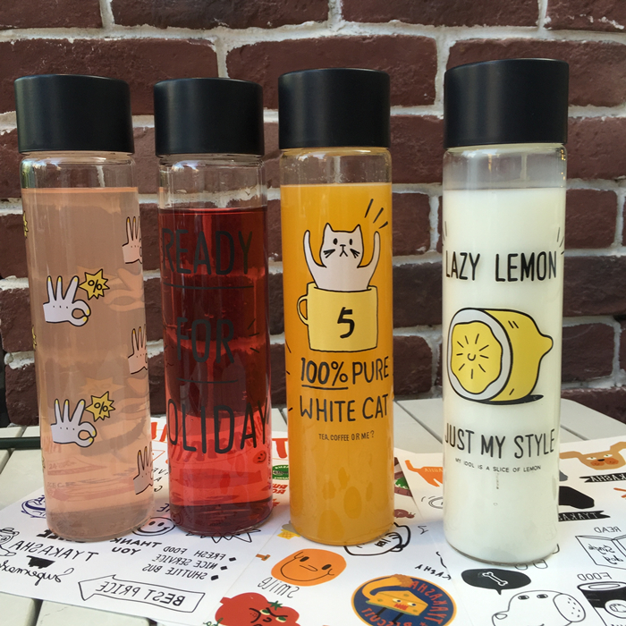 韓國創意原宿卡通OK檸檬貓咪細管玻璃水杯學生隨手杯情侶透明杯子1入