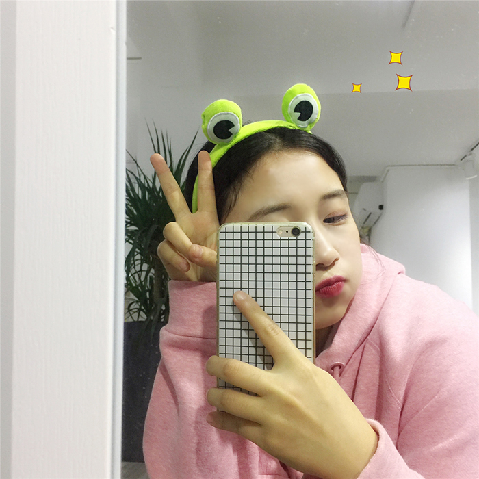 韓國chic卡通拍照道具賣萌派對青蛙眼睛發箍軟妹少女居家洗漱發飾1入