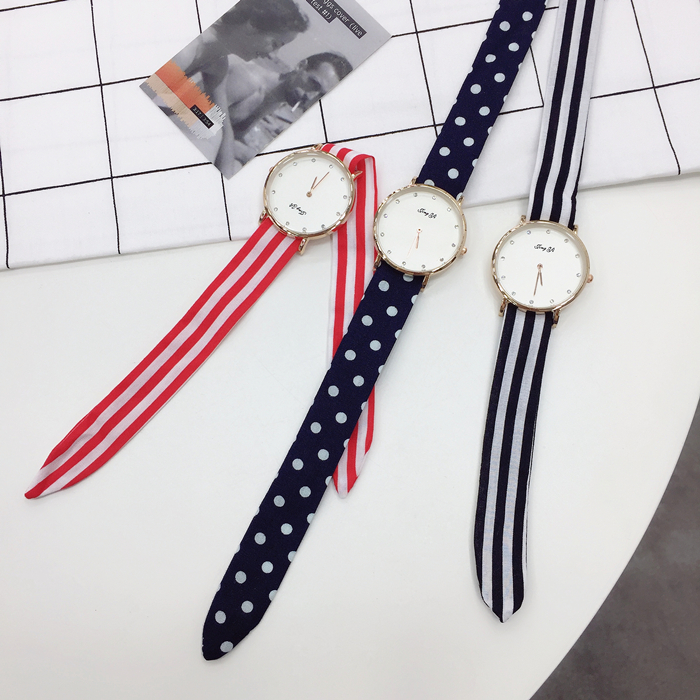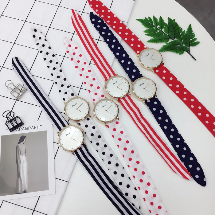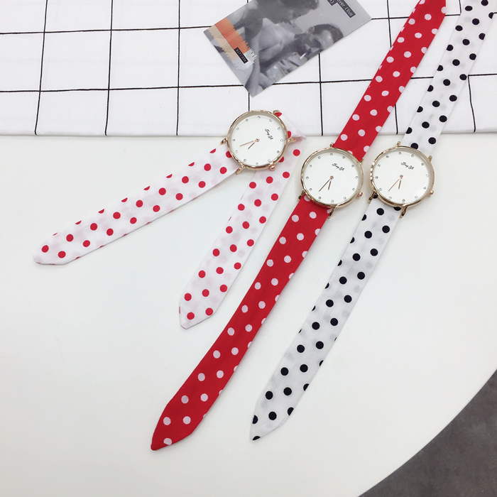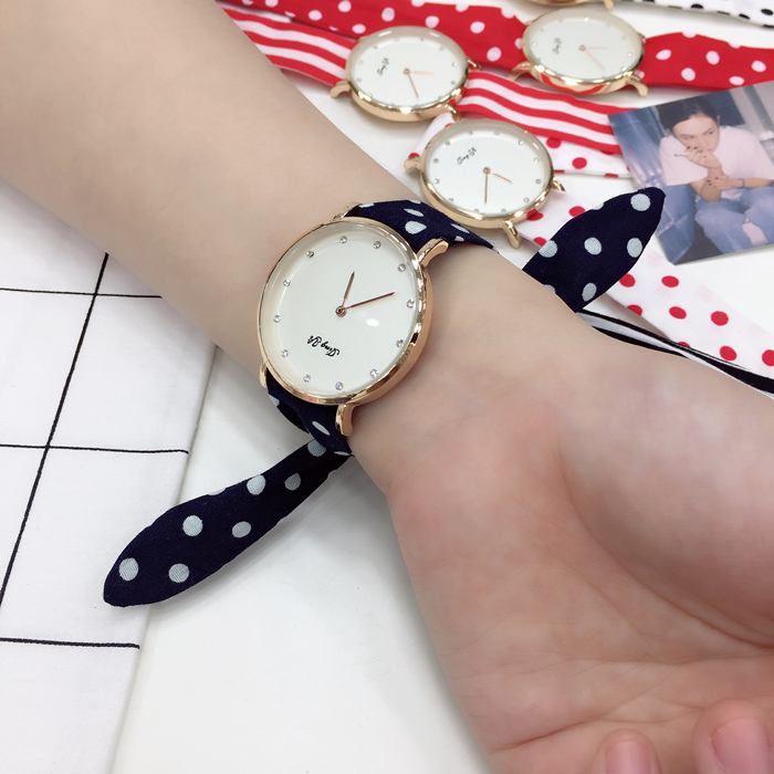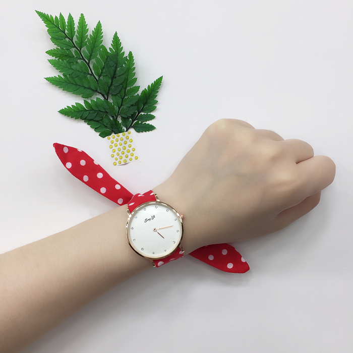 表帶有6個顏色 可以挑選的 戴的時候 直接綁一個蝴蝶結就可以了