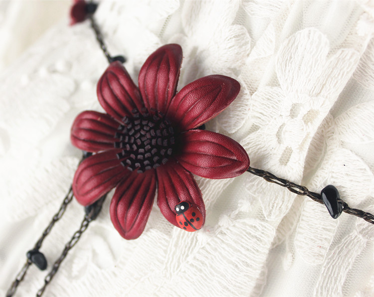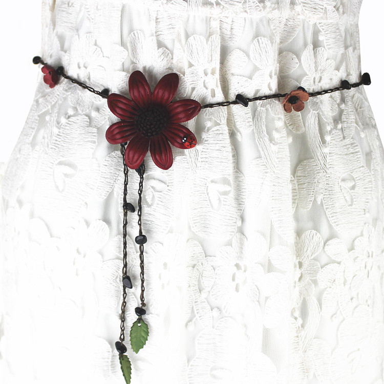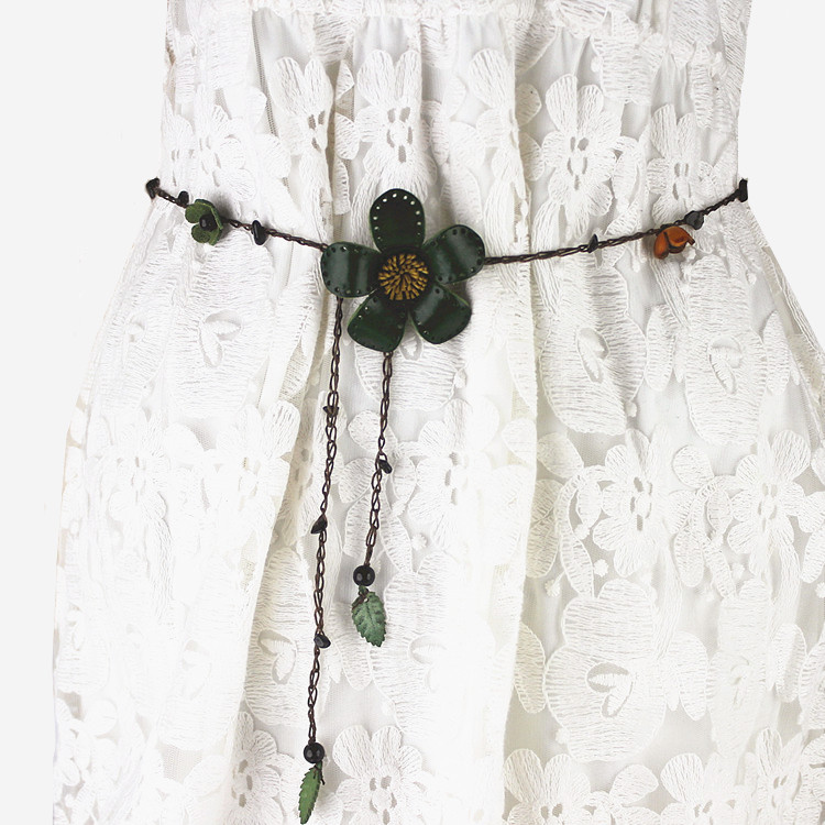 材質:花朵是頭層牛皮 腰帶身是進口蠟繩,