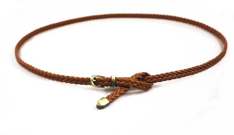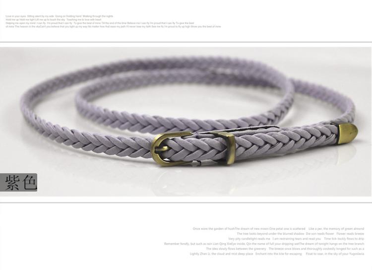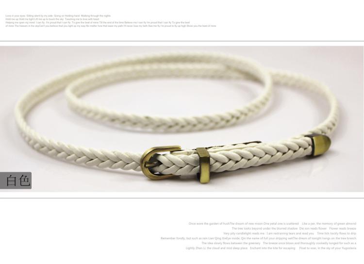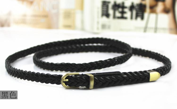 麻花編織細腰帶女簡約百搭韓國裝飾連衣裙打結黑色小皮帶糖果色1入