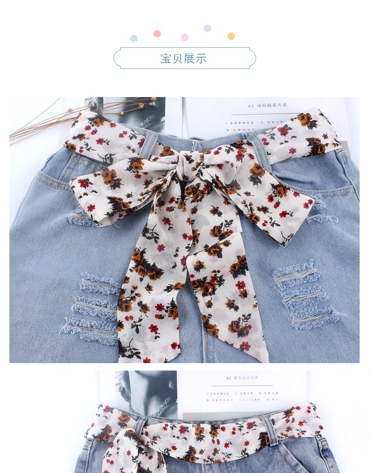 韓國絲稠腰帶女裝飾長條寬小清新雪紡布系帶腰繩連衣裙子配飾絲巾1入