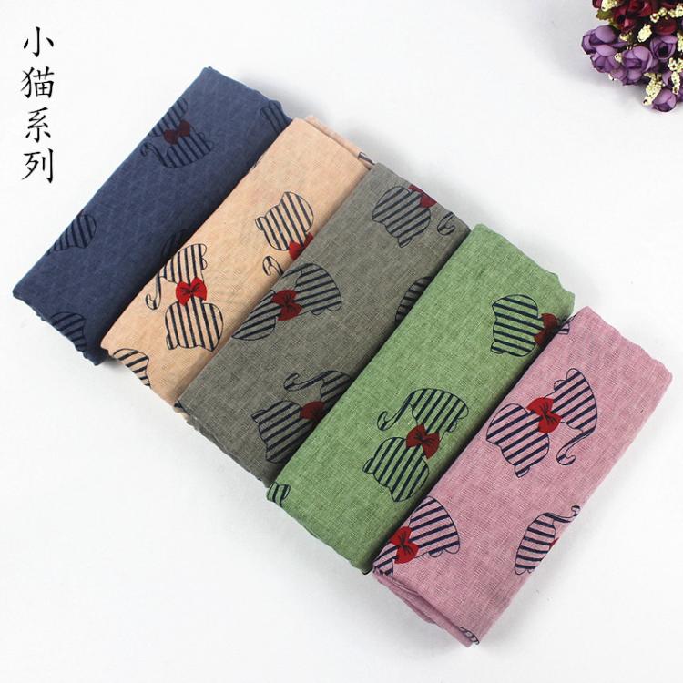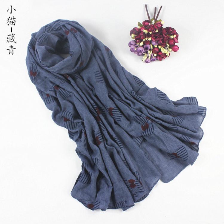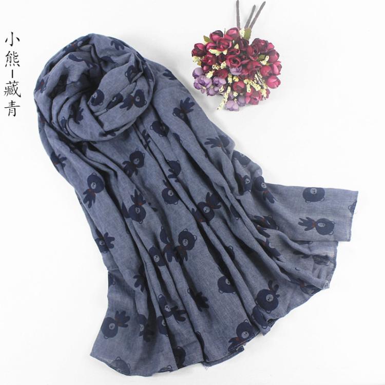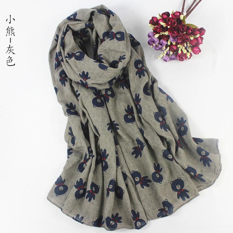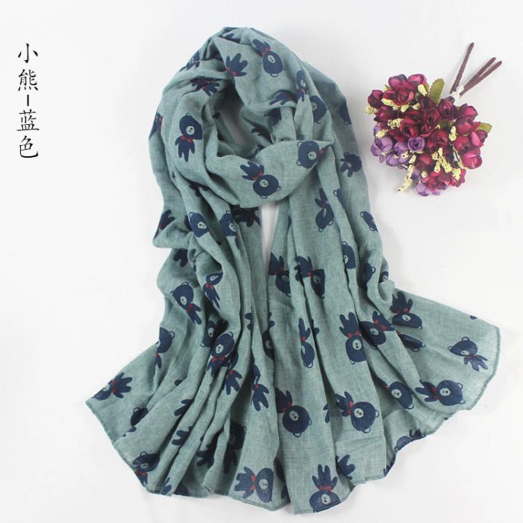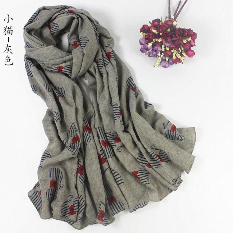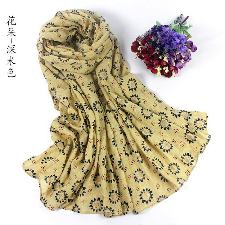 韓版百搭印花棉麻圍巾女春秋長款學生文藝絲巾花朵冬季保暖新款1入