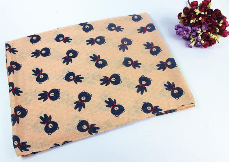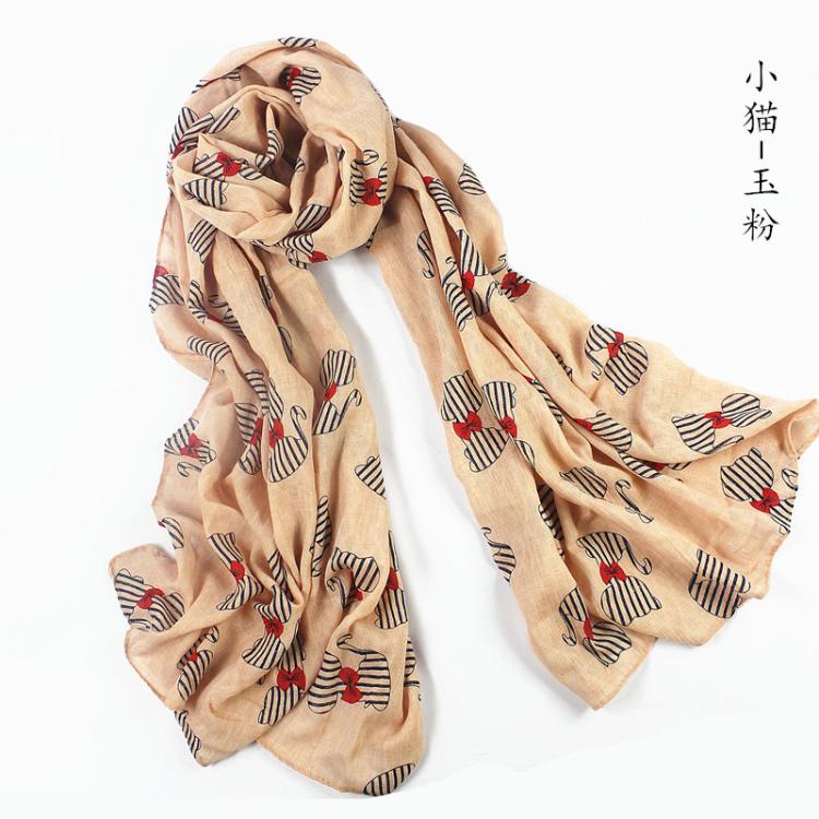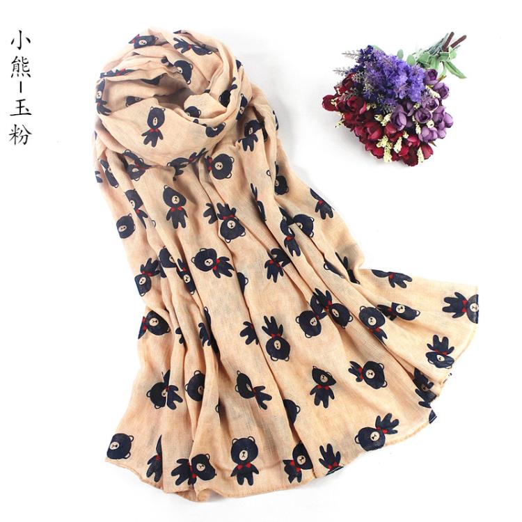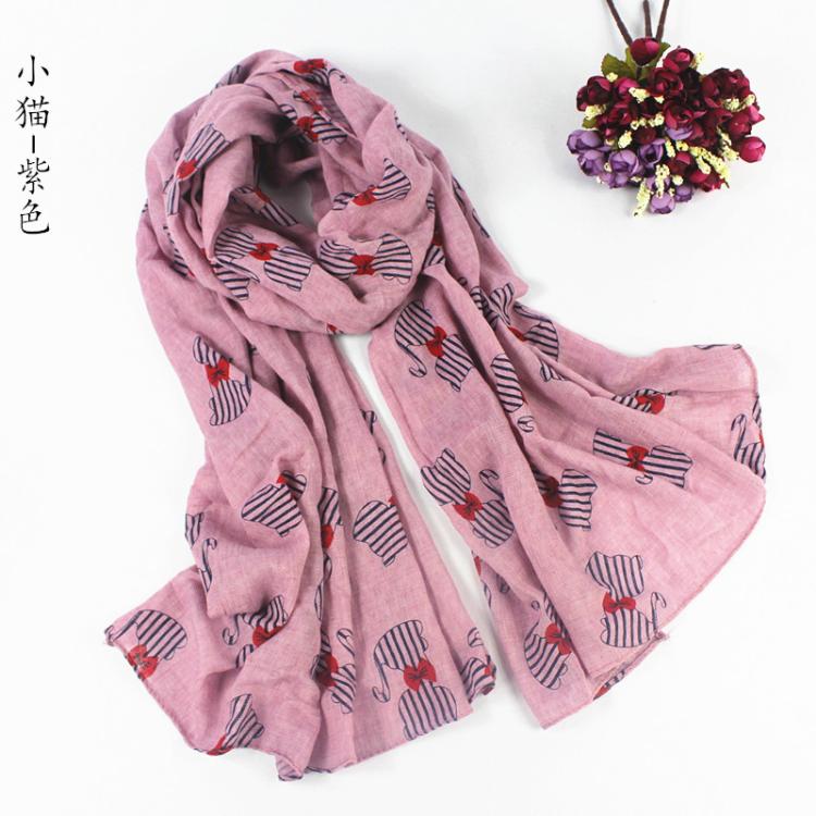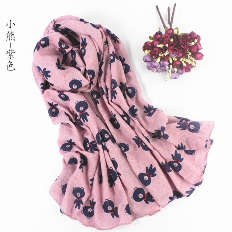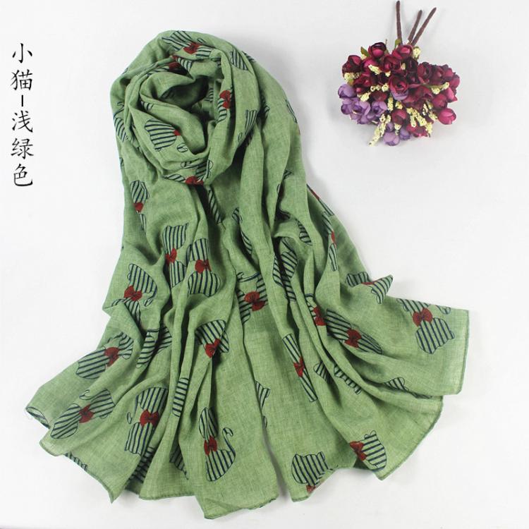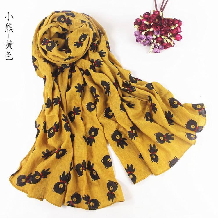 韓版百搭印花棉麻圍巾女春秋長款學生文藝絲巾花朵冬季保暖新款1入