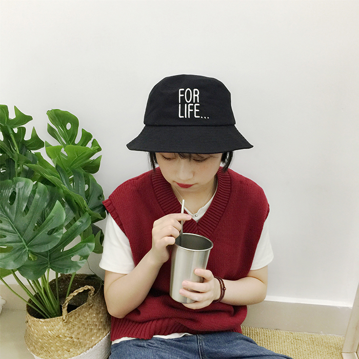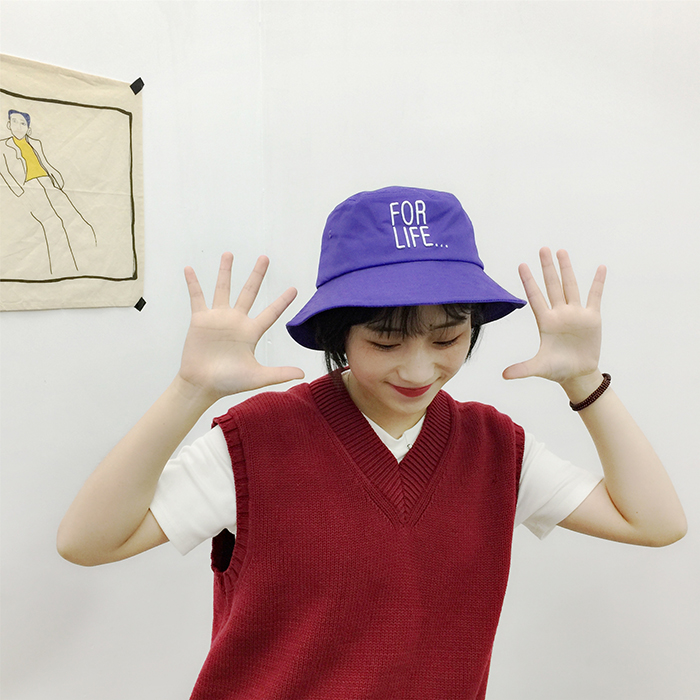 韓國潮文藝字母原宿漁夫帽百搭休閑小清新男女遮陽帽夏日防曬盆帽1入