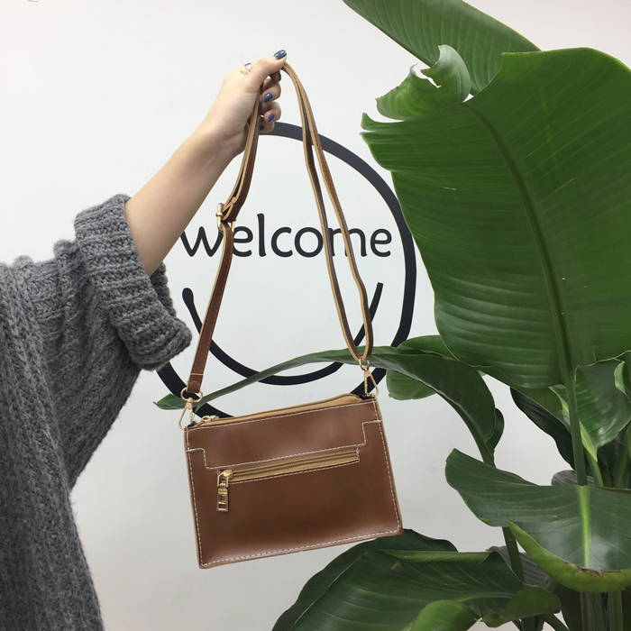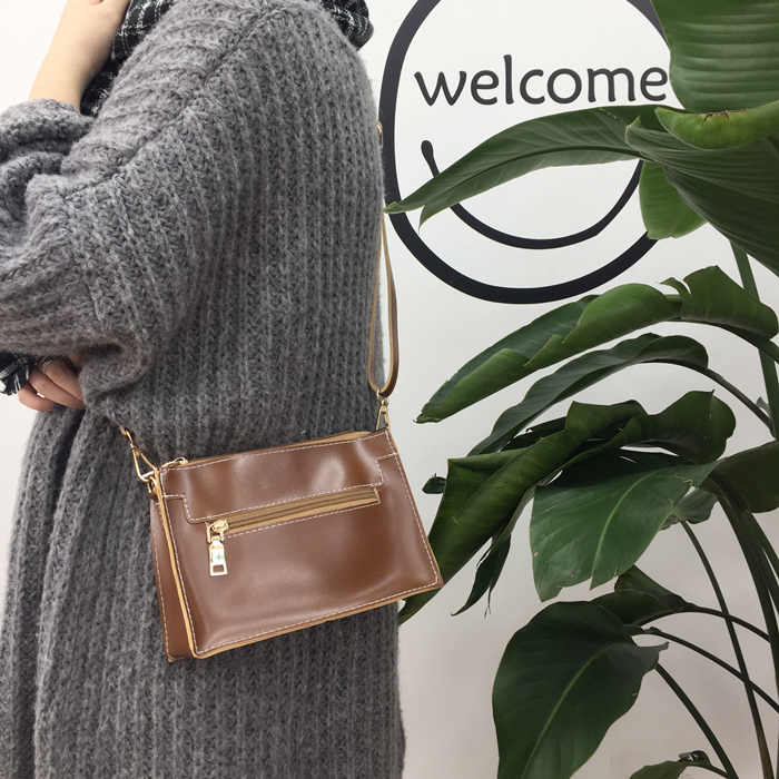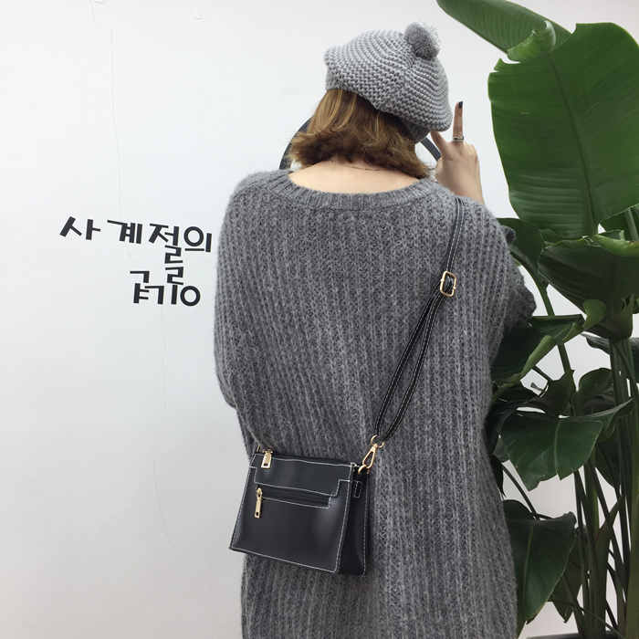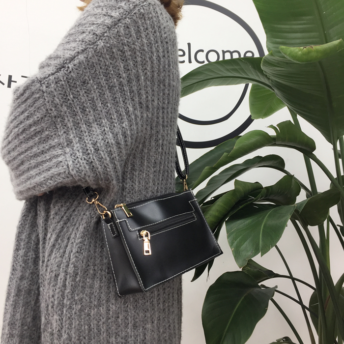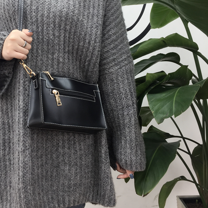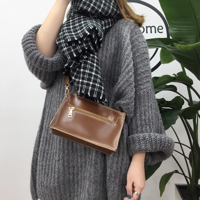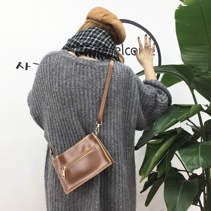 韓國原宿百搭復古個性拉鏈單肩包軟面學生純色PU斜挎包小方包女包1入
