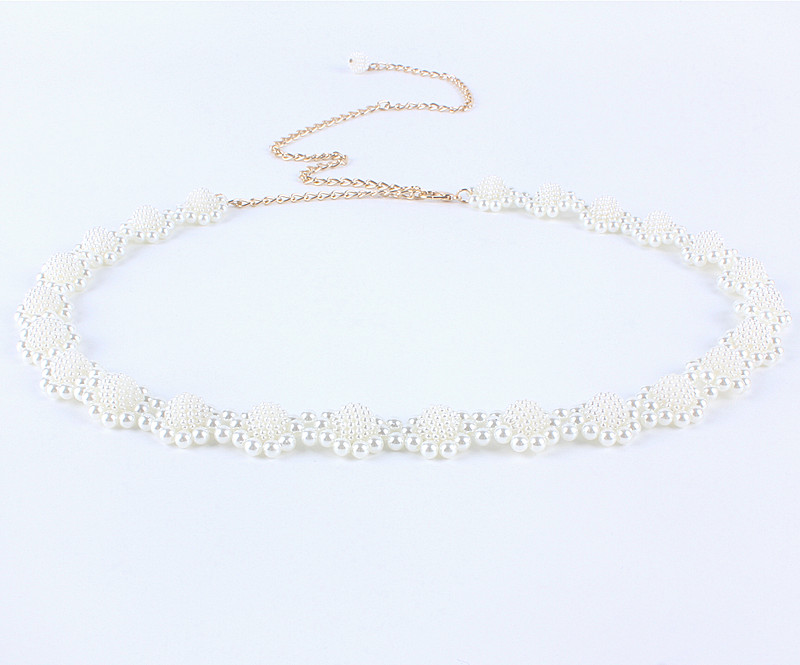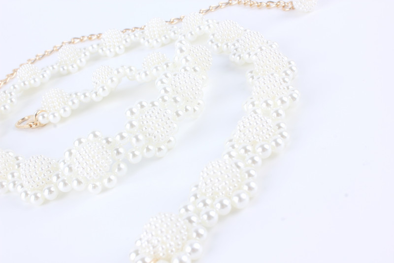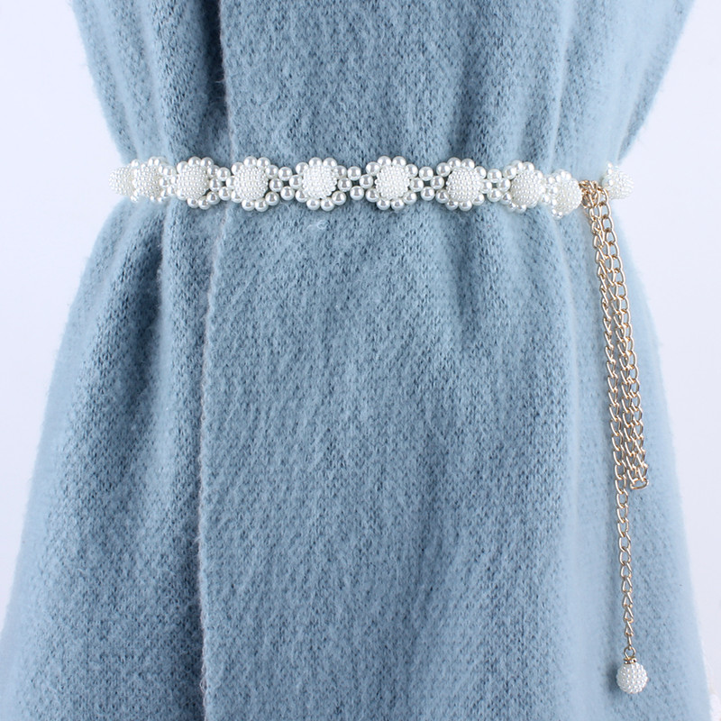 金屬腰鏈女裝飾連衣裙珍珠細腰帶配裙子時尚皮帶裙帶大衣外套鏈條1入