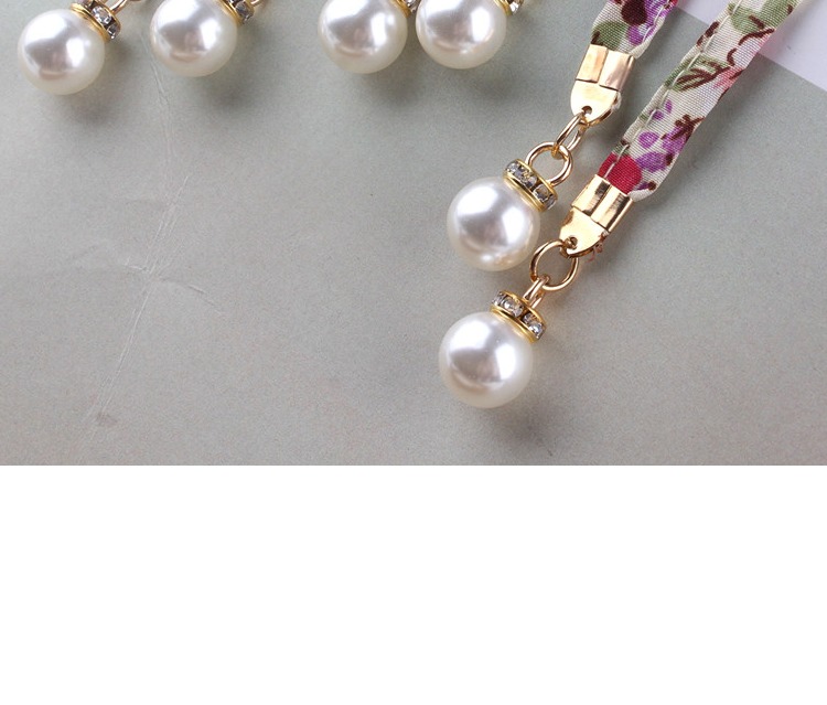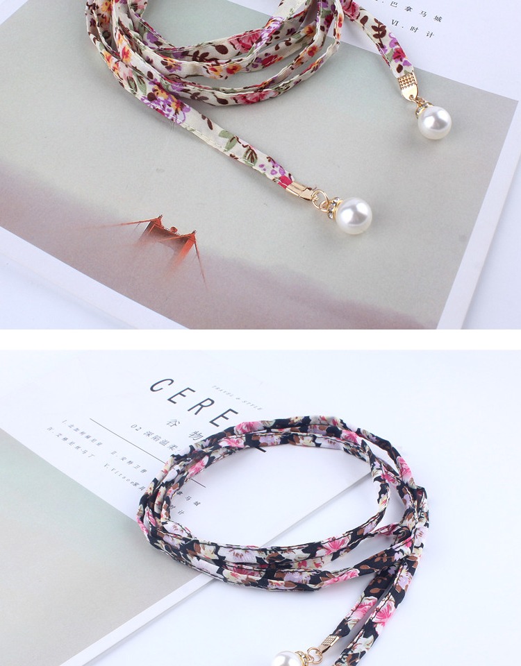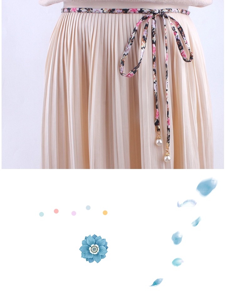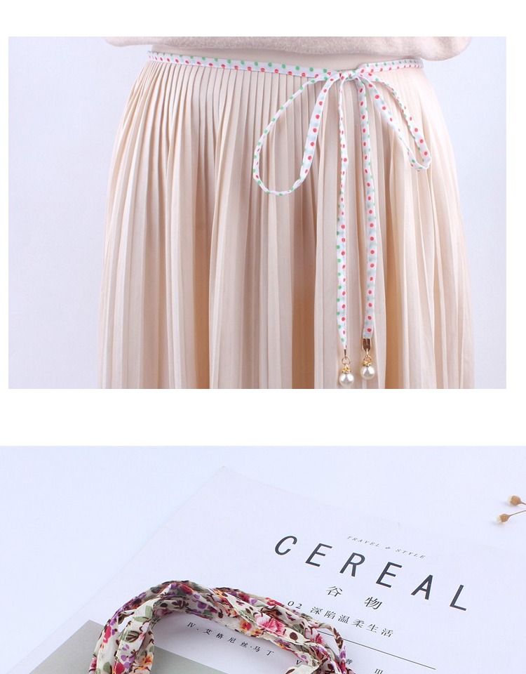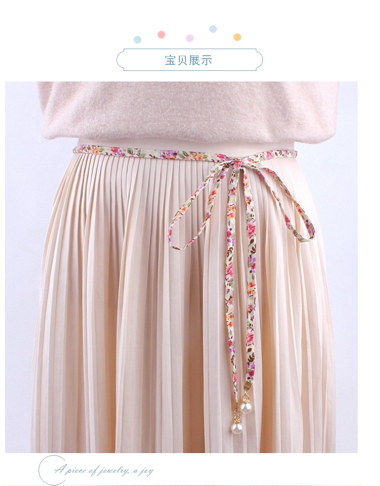 韓版花朵布腰帶女配裙子休閑百搭打結裝飾襯衫絲帶細腰鏈珍珠吊墜1入