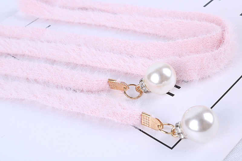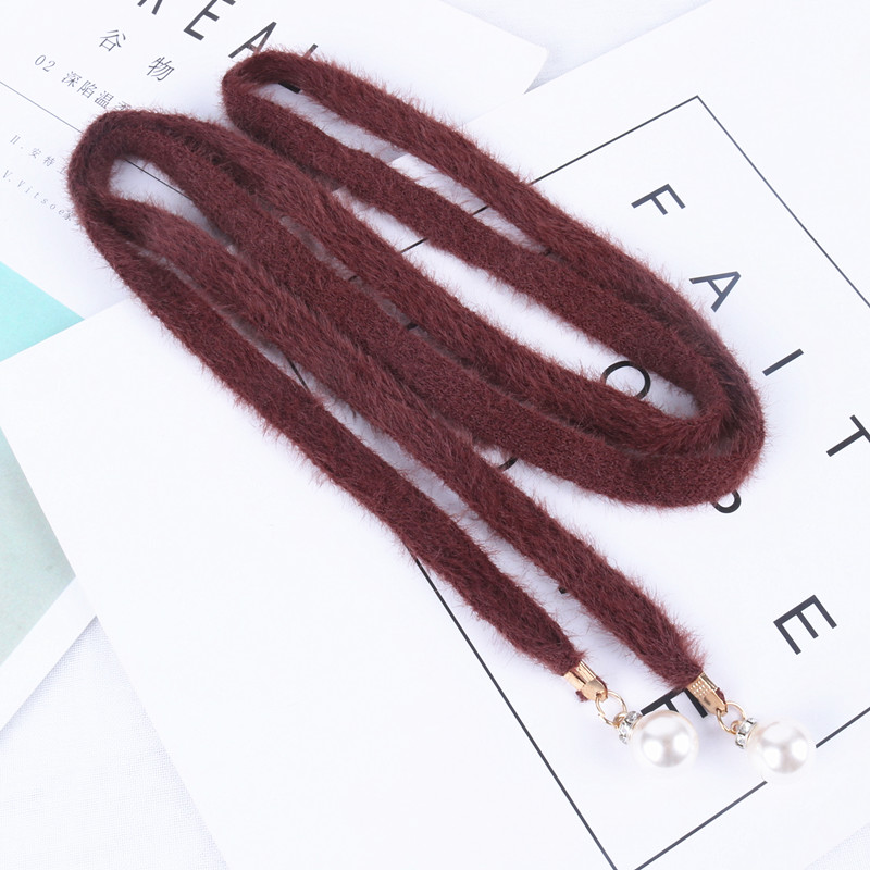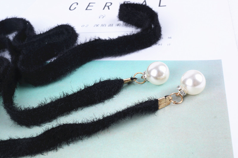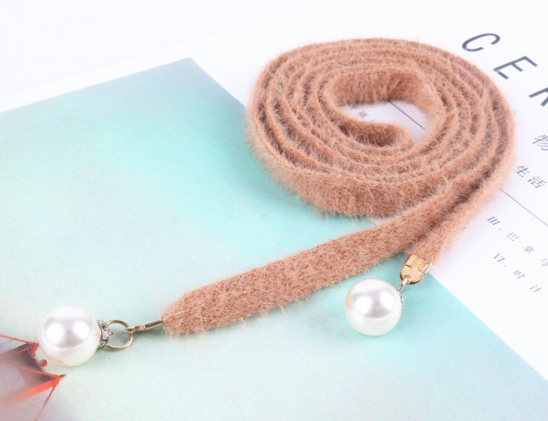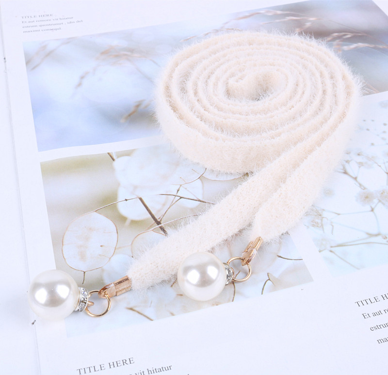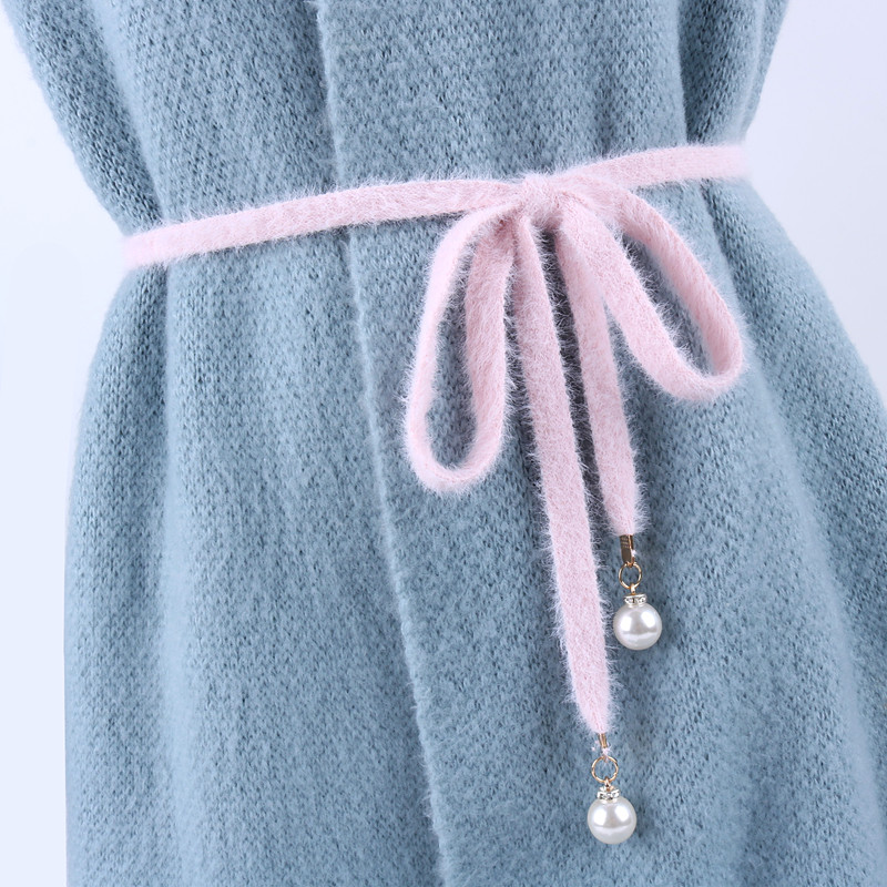 甜美百搭仿貂絨腰帶鑲珍珠