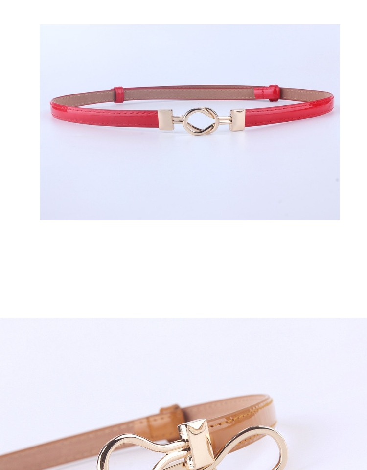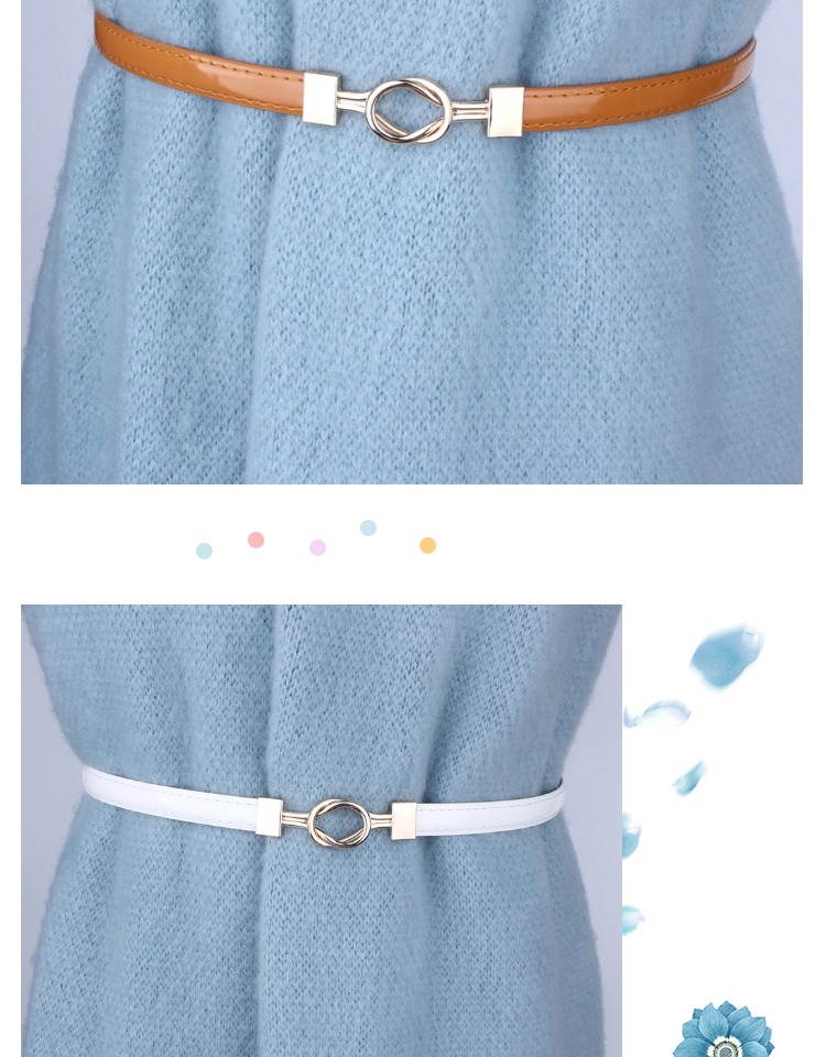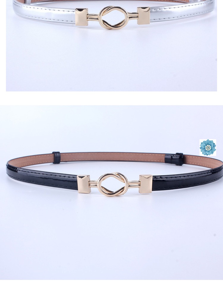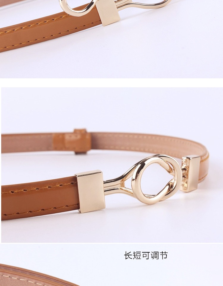 韓版黑色女士細腰帶女配裙漆皮窄皮帶裝飾連衣裙簡約百搭時尚腰鏈1入